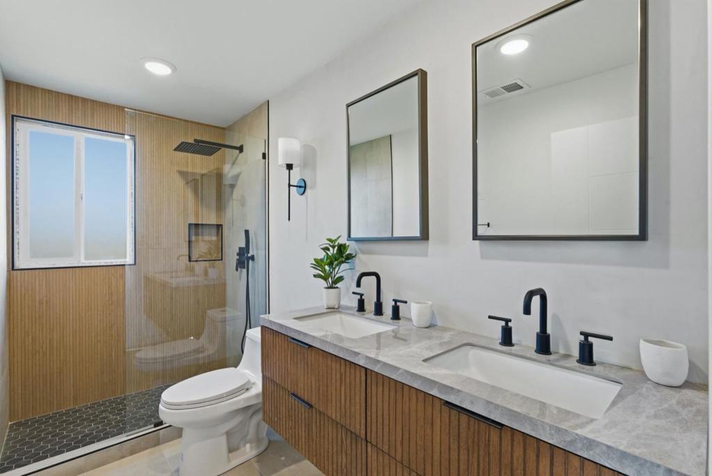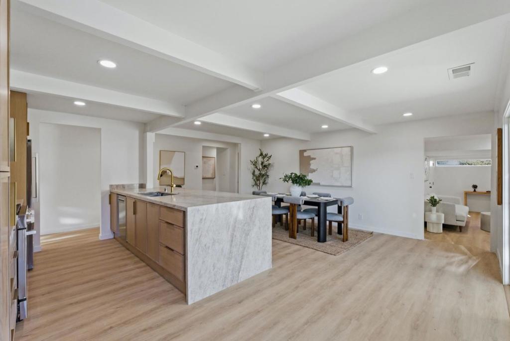 This stunning, extensively renovated 4 bedroom, 3 bath home perfectly blends elegant design with modern functionality. Step inside to discover an open concept floor plan flooded with natural light through expansive floor to ceiling windows, showcasing a seamless flow between the living, dining, and kitchen areas. The gourmet kitchen is a chefs dream featuring high end appliances, quartz countertops, designer finishes, and a large waterfall island that serves as the heart of the home. All bedrooms offer generous closets, while the primary suite provides a serene retreat with a beautifully designed spa like bathroom, custom built in closets, and private access to the backyard. Enjoy effortless indoor and outdoor living on the spacious concrete paver patio and turf area overlooking a private and tranquil yard. The backyard oasis includes a built in fire pit with bench seating and an outdoor chefs kitchen, perfect for entertaining year round. Additional upgrades include new systems throughout including central A/C, furnace, plumbing, electrical, and energy efficient fixtures, ensuring comfort and peace of mind for years to come.