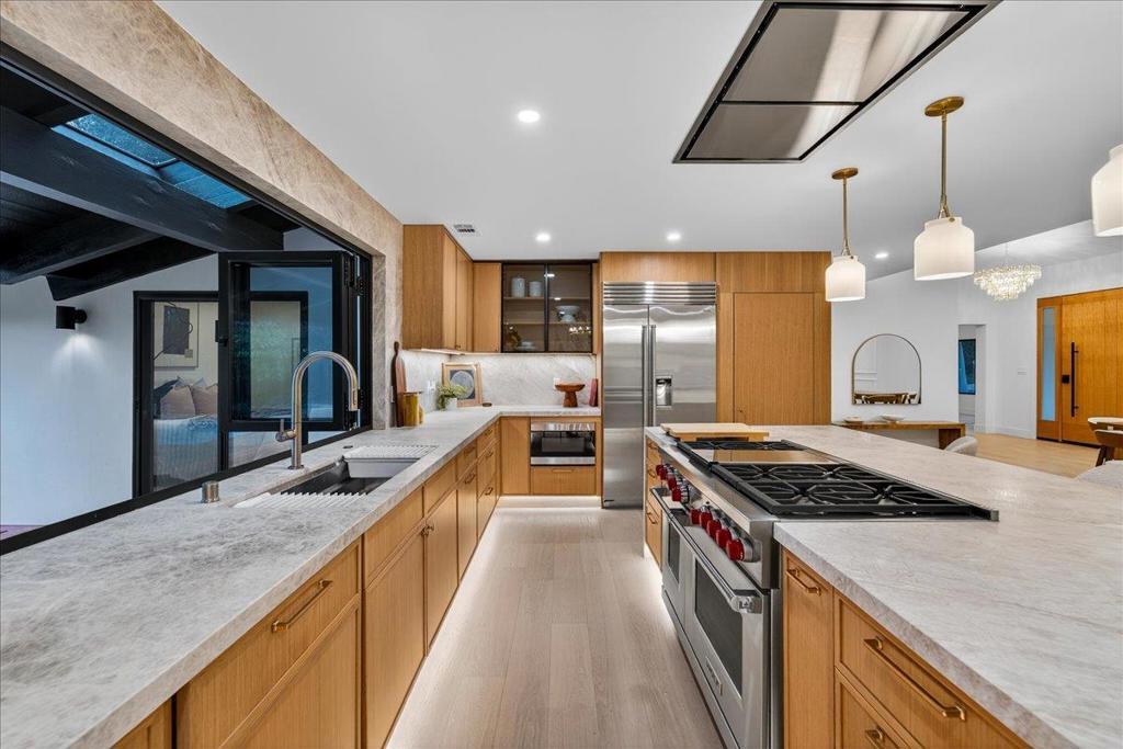 Welcome to 767 N Gate Pl, one of the finest homes ever offered in Walnut Creek, set in highly desired Northgate. This fully rebuilt and rare single-story 4BD/3.5BA luxury home was crafted with premium finishes, modern elegance, and timeless design with no expense spared. Experience Walnut Creek's best kitchen, wrapped in Taj Mahal quartzite from counter to ceiling with waterfall edges, a 48" Wolf dual-fuel range, 42" Sub-Zero refrigerator, panel-ready Miele dishwasher, hidden pantry door, & a bi-fold passthrough window above the 44" Kohler workstation sink. A floor-to-ceiling Calacatta Antique slab fireplace anchors the family room, & a bi-folding patio door opens to a gorgeous resort-style yard with a pool. The home includes engineered hardwood floors, smooth-finish walls, Milgard windows, two en-suites, spa-like bathrooms, generous bedrooms, & a primary suite with a freestanding tub & a walk-in closet larger than many bedrooms. Major upgrades include a new roof, Carrier HVAC, tankless water heater, upgraded electrical, smooth stucco, skylights, & a 3-car epoxy garage. Located near Boundary Oak Golf Course & Mount Diablo trails, & served by Northgate's top-rated schools & community. This is your chance to own a fully rebuilt Northgate masterpiece a level of quality rarely seen.