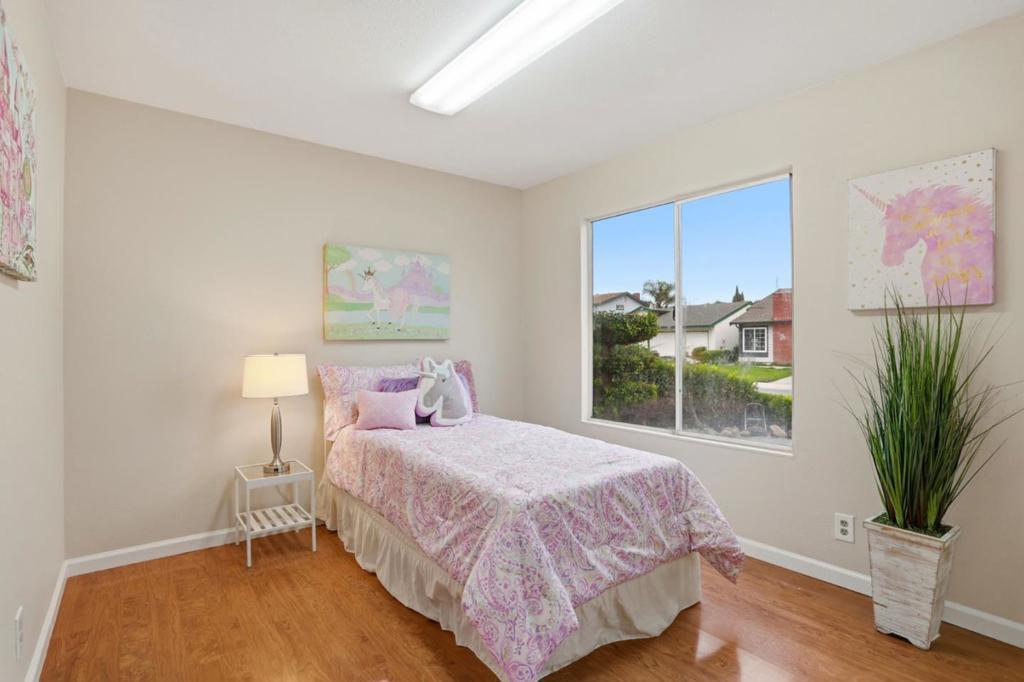 Waaay better than a Townhome! Charming home in the heart of SJ. With a generous 1,129 sq ft of living space, this home offers 4 bdrms, including a primary bedroom conveniently located on the ground floor & 2 full bathrooms featuring updated amenities such as a shower over tub, a stall shower, equipped w/blue tooth speakers. The kitchen boasts granite countertops & an electric oven range, seamlessly flowing into the living room for an open & inviting atmosphere. Enjoy meals in the cozy eat-in kitchen area. Home is equipped with modern conveniences including central AC & central forced air-gas heating, along w/energy-efficient solar panels, w/an expected 6 figure savings over the 25 yr warranty ($40k value). Flooring throughout is durable ceramic tile, perfect for easy maintenance. Vaulted ceilings & a walk-in closet add to the spacious feel of the home. A fireplace enhances the cozy ambiance & laundry facilities are conveniently located in the garage. Schools from Elementary, Middle to High School are all within a short 8 minutes drive. Bottomline, this home offers practicality & comfort for any large or extended family. Detached stand alone room can be used as a 4th bedroom or extra storage. Come by & enjoy for yourself, but be careful when you come in, you may want to stay!