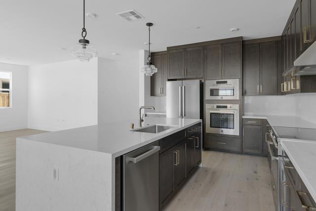 PRICE REDUCED! SPECIAL FINANCING AVAILABLE, START RATE OF 3.625% SAVE OVER $80,000 ON THIS RARE OPPORTUNITY FOR A BRAND NEW AND MOVE-IN READY HOME! Thoughtfully designed with quality craftsmanship, contemporary interiors and sought-after amenities this brand new move-in ready home on homesite 11 in the Heritage on 6th Street community is located in the heart of downtown Gilroy. Spacious and family-sized on an oversized lot, the premium hand-selected, designer curated interior details enhance the beauty of the elevated luxurious finishes. Exceptional features include all-electric systems and leased solar paired with a Tesla Powerwall 3 battery. An expansive gourmet kitchen offers a butlers pantry and features a Bertazzoni induction range, French door refrigerator, quartz countertops and spacious island. The 2-story foyer with elegant hardwood floors leads to a great room filled with an abundance of natural light. Stacking glass doors blend indoor and outdoor living to a covered loggia creating a private oasis to unwind and entertain. The first floor generational suite includes an en suite bathroom offering comfort and convenience. Central to the spacious loft upstairs are three secondary bedrooms, laundry room and luxurious master suite.