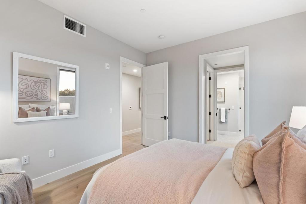 Discover quiet luxury and modern elegance in this exceptional downtown residence! The open-concept living room features soaring ceilings and luxury NanaWall folding glass doors, filling the home with natural light and creating seamless flow between spaces. The chefs kitchen is outfitted with Thermador appliances, integrated refrigerator and dishwasher, and custom wood cabinetry that perfectly blends function and elegance. Each bedroom is a private suite -- a rare All-Suite design in the Bay Area. Enjoy engineered wood flooring throughout and 1 extraordinarily large private balcony, spacious enough to feel like your own backyard retreat -- ideal for BBQs, outdoor dining, morning yoga, or evening gatherings under the stars. Built with enhanced sound-insulation, this home offers exceptional quiet and privacy even in the vibrant city core. Additional highlights include 2 underground parking spaces per unit, EV-charging infrastructure, a gated community with landscaped courtyards. Unbeatable location -- walk to cafes, fine dining, shopping, and Caltrain; minutes to major highways (101, 85, 237), and top tech campuses including Google, Meta, Nvidia, Apple and many more. Live where innovation meets style, enjoy modern elegance in the heart of Silicon Valley.