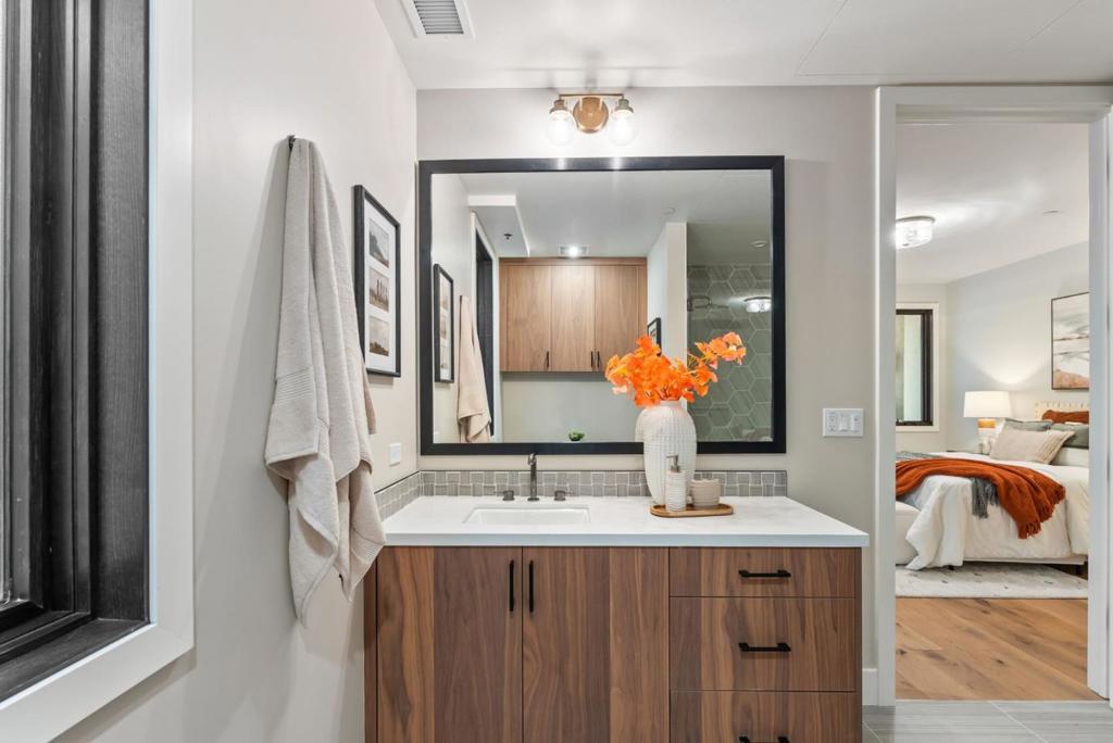 Discover quiet luxury and modern elegance in this exceptional downtown residence. The open-concept living room features soaring ceilings and luxury NanaWall folding glass doors, filling the home with natural light and creating seamless flow between spaces. The chefs kitchen is outfitted with Thermador appliances, integrated refrigerator and dishwasher, and custom wood cabinetry that perfectly blends function and elegance. Each bedroom is a private suite -- a rare All-Suite design in the Bay Area. Enjoy engineered wood flooring throughout and THREE extraordinarily large private balconies -- each spacious enough to feel like your own backyard retreat -- ideal for BBQs, outdoor dining, morning yoga, or evening gatherings under the stars. Built with enhanced sound-insulation, this home offers exceptional quiet and privacy even in the vibrant city core. Additional highlights include 2 underground parking spaces per unit, EV-charging infrastructure, a gated community with landscaped courtyards. Unbeatable location -- walk to cafes, fine dining, shopping, and Caltrain; minutes to major highways (101, 85, 237), and top tech campuses including Google, Meta, Nvidia, Apple and many more. Live where innovation meets style, enjoy modern elegance in the heart of Silicon Valley.