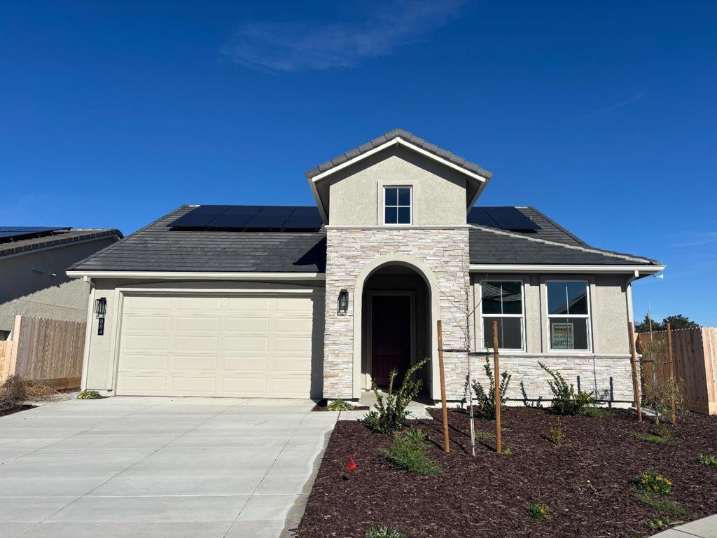 New construction in Santana Ranch! This new Anderson Home sits on an oversized cul-de-sac lot with potential RV parking and scenic mountain views. Inside, this home boasts abundant natural light, a large kitchen island, and an expansive great room. The spa-like primary bathroom has a Kohler soaking tub, separate walk-in shower, and a gorgeous solid surface vanity with dual sinks. Carefully selected flooring includes hand-set tile in the bathrooms and laundry room, durable laminate wood floors in the kitchen and dining, and plush carpet in the bedrooms and great room. Every finish has been chosen with both beauty and everyday living in mind, making this home as practical as it is stunning. Whether you're relaxing by the window with your morning coffee or hosting friends under the stars, this peaceful home offers a rare combination of cozy living and wide-open space. Other popular features of this home include a solar system, great room fireplace, smart thermostat, ring doorbell, insulated finished & painted garage, and much more!