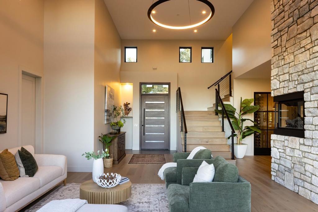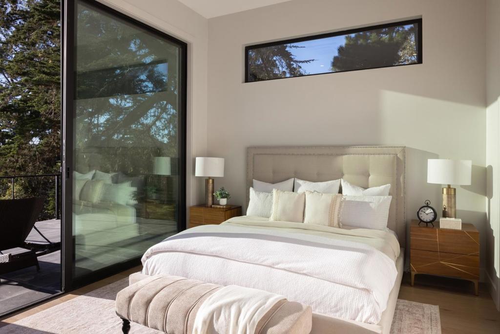 This stunning, brand-new modern home is located in the peaceful Carmel Woods neighborhood, just minutes from downtown's shops, restaurants, and beaches. The 3-bedroom, 2.5-bath residence offers 2,244 sq ft of light-filled living space on a ~10,000 sq ft lot. The spacious living room, featuring a striking tri-sided gas fireplace, opens onto a large deck that overlooks the tranquil forest. The beautiful gourmet kitchen includes a large island with a breakfast bar, high-end appliances, a wine closet, and an adjacent dining area. The main-level primary suite with deck access includes a walk-in closet with laundry hookups, and a spa-like bathroom with radiant heat flooring, dual sinks, soaking tub, and custom shower. Upstairs are two bedrooms with balconies, a shared bathroom, laundry hookups, and peeks of the ocean. Additional highlights include high ceilings, a stucco and cedar exterior, solar panels, an attached 2-car garage, and a large pavered driveway with additional parking space. This is an exceptional opportunity for a brand-new, turn-key home in Carmel.