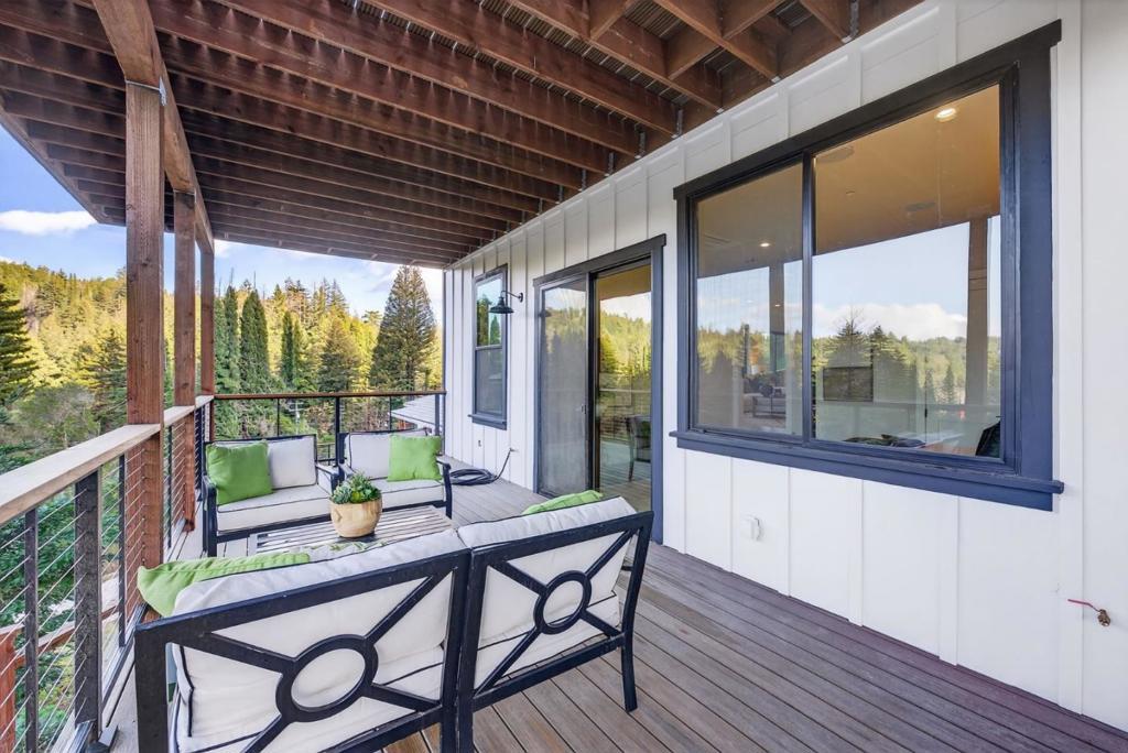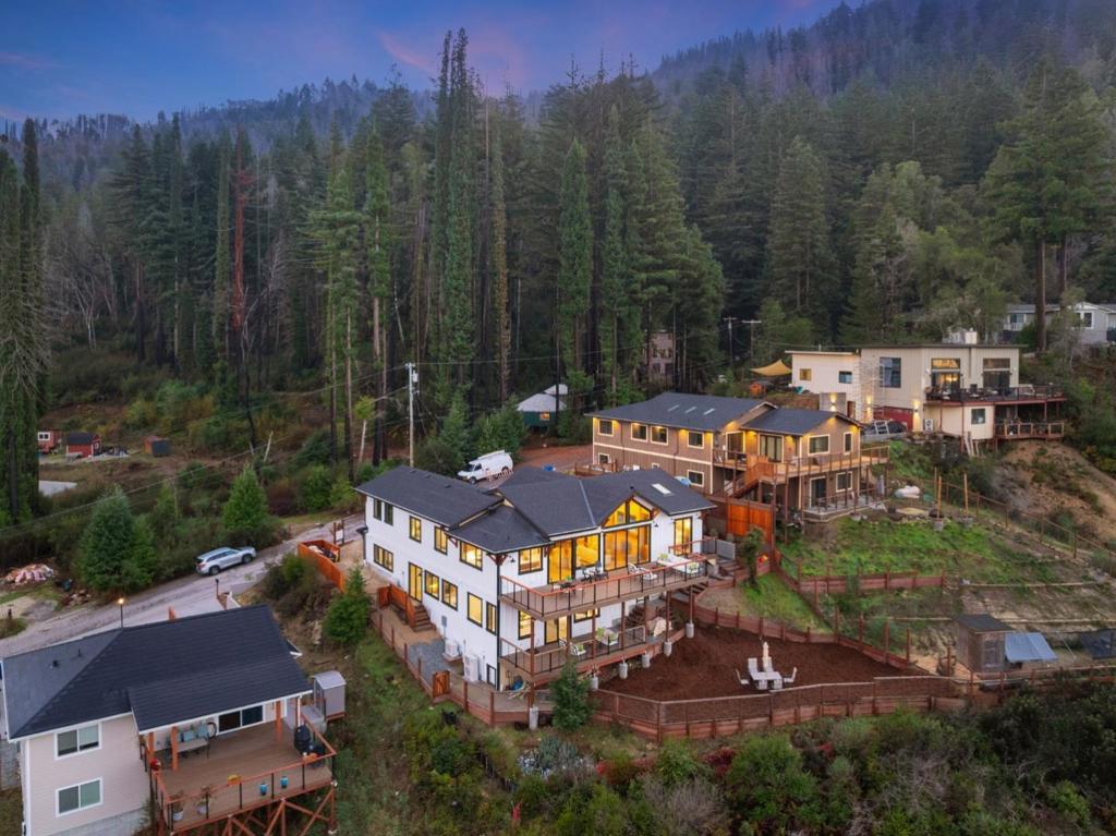 Welcome to 230 Fern Rock Way, a modern mountain retreat where tranquility meets convenience. Newly built in 2025, this modern farmhouse masterpiece offers 5 bedrooms, 4 baths, and 3,365 sq ft of thoughtfully designed living space, including a beautifully integrated attached ADU, ideal for guests, multigenerational living, or supplemental income. Soaring vaulted ceilings and walls of glass flood the home with natural light, framing panoramic mountain views and forested horizons. The gourmet kitchen is a chefs dream, showcasing Wolf brand appliances, quartz counters, and designer finishes throughout. Each room is outfitted with wired ethernet & built in Sonos speakers. Enjoy the best of both worlds, modern luxury with public utilities and owned solar panels for sustainable living. Situated less than a mile from Boulder Creek Golf & Country Club and just 6 minutes to downtown Boulder Creek's charming shops and cafes, this home also offers easy access to Big Basin Redwoods State Park (15 minutes) and Los Gatos via Hwy 9 in just 40 minutes. Experience elevated mountain living - serene, stylish, and perfectly connected.