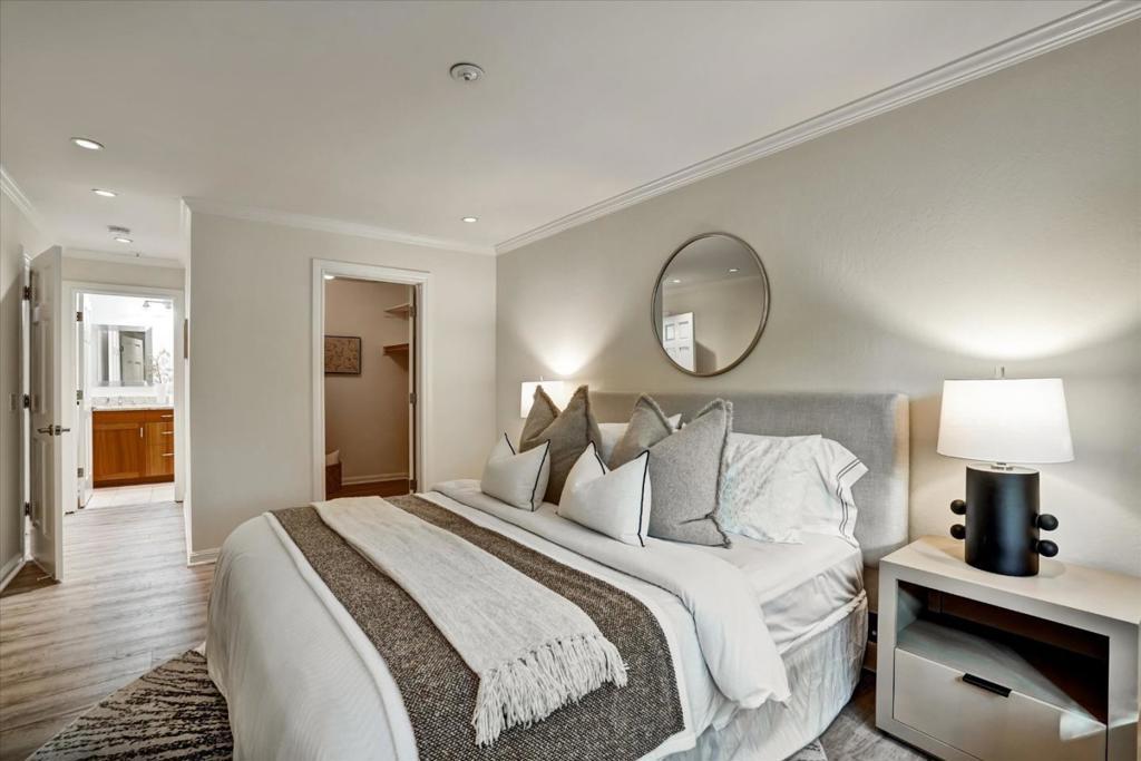 Welcome to this charming, turnkey pied-a-terre located in a park-like setting in a quaint Los Altos neighborhood. The open-concept kitchen is equipped with stylish appliances, a granite countertop, solid cherrywood cabinetry, a side-by-side fridge, a pullout pantry, a double-oven with convection/microwave with a warming drawer. Typical Cali nights beckon you to your spacious fenced patio for alfresco entertaining. The primary bedroom suite features a walk-in closet, a double-sink vanity with a granite countertop, and solid-wood custom cabinetry. Additional amenities include full-size W/D, double-paned windows, a drip irrigation system, a designated storage closet, covered carport space, and a private parking area for extra vehicles. Eco-friendly location for walking or biking to schools, shops, restaurants, parks, medical, Stanford University, and all major tech companies. The HOA fee covers gas, water, garbage, pool, and common area amenities.