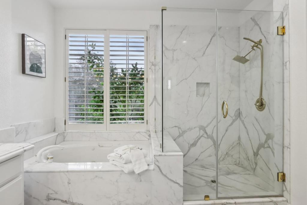 Nestled in the prestigious gated community of Silver Creek Valley Country Club, this bright and airy home offers unparalleled privacy and tranquility, with no neighbors in front, behind, or on one side. Step inside to soaring vaulted ceilings and abundant windows that seamlessly bring the outdoors in, you'll find that this mostly single-story residence features a luxurious primary suite on the first level, along with formal living and dining areas, a family room, and two guest bedrooms. Upstairs, you'll find a spacious second primary bedroom suite with a large sitting area, walk-in closet and full en-suite bath. The chefs kitchen boasts new stylish quartz countertops, a backsplash, and an island, and is connected to the family room overlooking scenic community landscape. Additional special features include solid hardwood flooring and plantation shutters throughout, a paid 6.5 kWh solar system, EV charging outlet in the three-car garage, tankless water heater, whole-house water filtration system, smart toilets, and smart sprinkler controls that automatically adjust watering based on weather, all to enhance comfort, efficiency, and style. Fully upgraded and turnkey, this home is move-in ready and perfect for immediate enjoyment. Come and fall in love!
