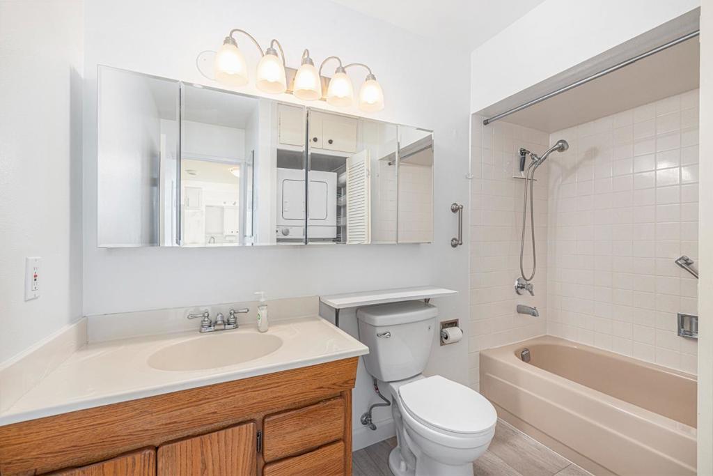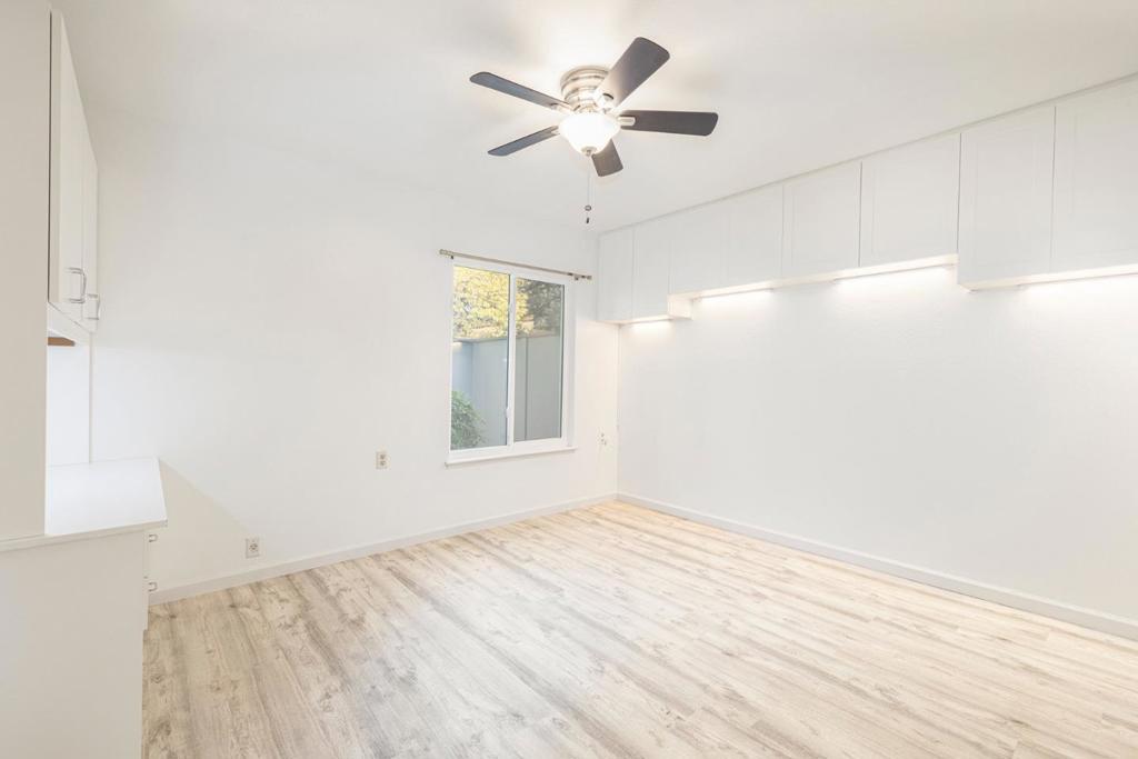 Available 1BD/1BA Del Monte ground floor unfurnished layout for 55 and over in Rossmoor Walnut Creek, in a sunny and peaceful location near Hillside Club. Upgrades include smooth ceilings, ceiling fans, updated lighting, stacked washer dryer, dishwasher, built-in microwave, disposal, hot water heater, built in desk, bathroom cabinets, and wall cabinets, double-paned windows & slider. Carport and storage are steps away. Open kitchen features an added glass fronted cabinet, over the stove built in microwave with vent, a movable island with maple wood flip-top surface. Bedroom features a ceiling fan, built in desk with three drawers, cabinets. Nine-foot plus closet with sliding mirrored doors amplify light from the window. Nearby Hillside Clubhouses range of amenities, include an outdoor pool, sports and club meetings. Rossmoor additionally provides charging stations, fitness center, pools, hot tub, tennis, pickleball, bus transportation, 9-hole and 18-hole golf with extra fees, an on-site restaurant, a library, activity rooms for the many clubs, movie theater, an Event Center, gated security, and more. Everyday necessities are close by, including Safeway, Whole Foods, Broadway Plaza, Heather Farm Park, and local cafés along downtown and along Ygnacio Valley Road. 1 Pet Cat allowed