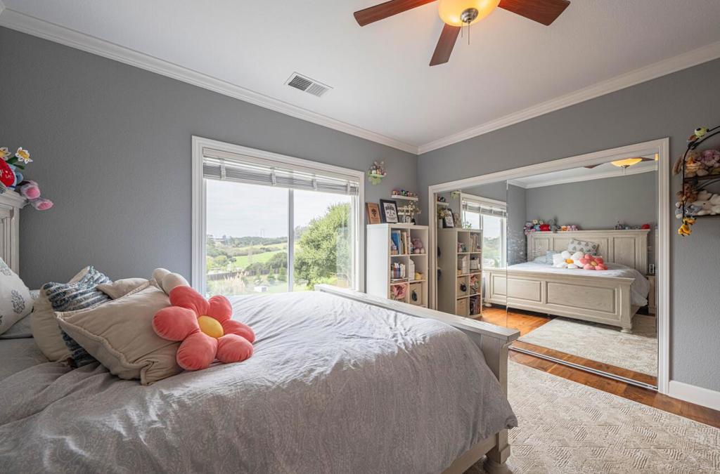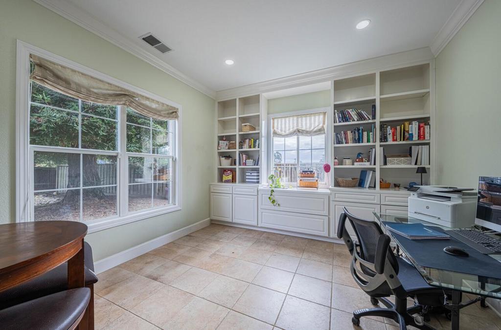 Discover space, privacy, and modern comfort in this beautiful newer Mediterranean retreat on 1.21 usable acres in a gated community. This home features soaring ceilings, an open-concept kitchen with granite counters, gas cooktop, double ovens, and a large family room ideal for entertaining. A formal dining room and dedicated office provide the perfect blend of work and leisure, while a bedroom and full bath on the main level make hosting guests effortless. Upstairs, the spacious primary suite includes a sitting/office area, walk-in closet, oversized soaking tub, and a separate marble shower. A media room and convenient upstairs laundry elevate everyday living. Recent upgrades include a reverse osmosis system, whole house carbon filtration system, water softener, solar power, EV wiring, dual tankless instant hot water heaters, recirculation pump for instant hot water at each fixture, security system, fresh interior/exterior paint, dual-pane windows, tile and walnut flooring, energy-efficient fixtures and appliances, and a hot tub. Outside there is plenty of room for oversized vehicles, fenced areas, drought-tolerant landscaping, a 10'X14' shed, and a rare 1,212 sq. ft. metal shop w/ 10' roll up doors. Private yet convenient to Hwy 101, Monterey, Santa Cruz and Silicon Valley.