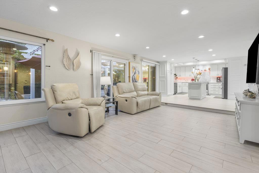 Completely remodeled; grand four-bed 2 1/2-bath floorplan w/ soaring ceilings in living and abundant natural light. The huge kitchen features an island and ample cabinet space. Family room with a wet bar and a fireplace. Oversized primary suite w/ vaulted ceiling, walk-in closet, and fireplace, jetted tub in bathroom, and stall shower. Recessed lights in every room. Everything has been remodeled and updated, including a beautiful backyard with a patio, a lighted pergola, and mature foliage, including fruit trees. Discover the perfect blend of comfort, convenience, and natural beauty in this beautiful home located in the heart of Morgan Hill. Situated at the southern gateway to Silicon Valley, this home offers a relaxed lifestyle amid rolling hills, open space, and a welcoming community. Morgan Hill is known for its small-town charm, mild Mediterranean climate, and scenic surroundings. Enjoy a vibrant downtown with local shops, restaurants, breweries, and farmers markets. Outdoor enthusiasts will love the nearby parks, trails, and open space, including Uvas Canyon and Chesbro Reservoir.