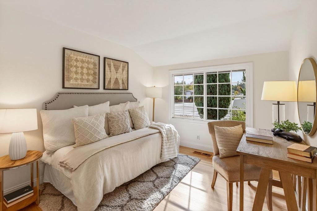 This freshly updated home showcases an inviting setting for indoor/outdoor living with a sparkling pool and spa, western hill views at the front, and sidewalk-lined streets. Newly painted interiors, refinished hardwood floors, and updated lighting enhance the home. The formal living room with fireplace and formal dining room open to the rear grounds for poolside entertaining. The kitchen has white cabinetry topped in granite, including an island, and extends to the family room for everyday gatherings and added pool access. 5 bedrooms provide flexibility, including one on the main level ideal for an office. The upstairs primary suite features a walk-in closet and en suite bath plus direct access to an adjoining bedroom, perfect for a nursery. Outdoor enjoyment awaits with a large pool and spa, arbor-covered deck, and lots of space for entertaining and play. The close-in location is near Fremont Older Open Space Preserve, Highway 85, and highly regarded Cupertino schools including Monta Vista High.