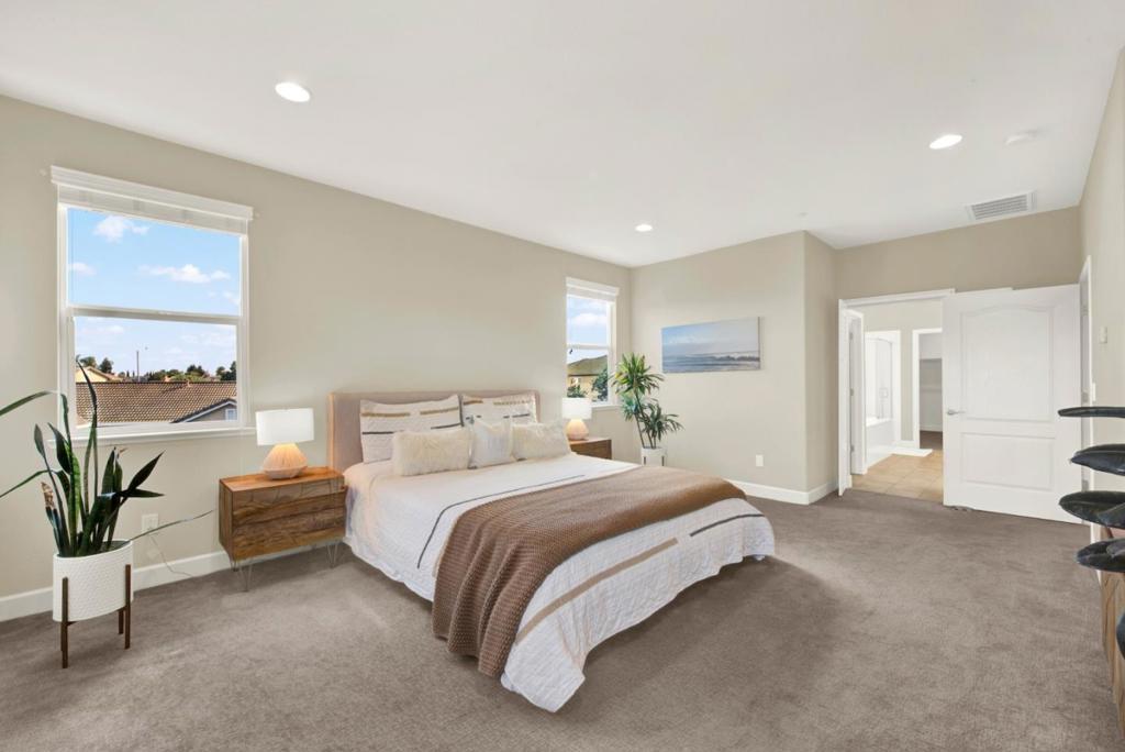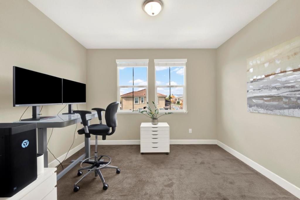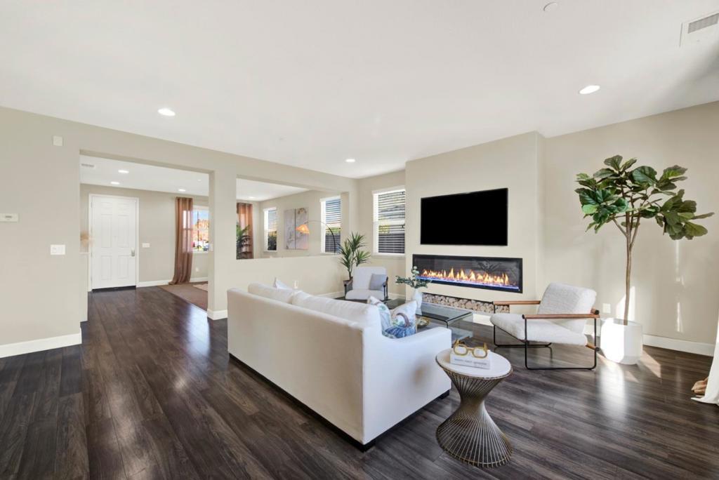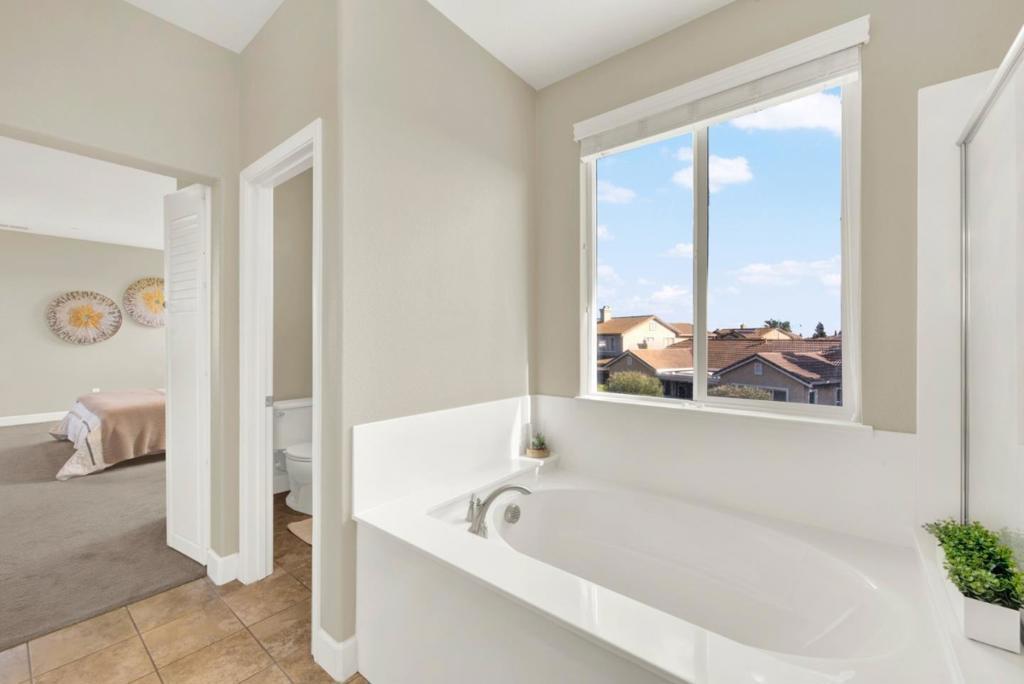 Spacious modern home for rent located in the beautiful Sterling Chateau neighborhood of Vacaville. Open concept layout: entry area with a coat closet, living room with a statement fireplace, light filled dining room space, and kitchen with numerous cabinets. This is the perfect place for large gatherings and holiday celebrations. Four bedrooms upstairs: an expansive primary bedroom and bathroom with a double sink, shower, bathtub, and a walk-in closet; the fourth bedroom has its own private feel, located at the end of the hallway with a full bathroom next to it. Large backyard with covered patio. You are midway between San Francisco and Sacramento, with proximity to Napa Valley, and minutes away from Travis AFB. Enjoy Vacaville Premium Outlets and Nut Tree Plaza. Magnolia and Play4All Parks near by.