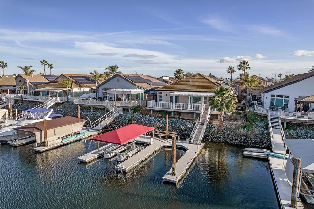 Experience the serenity of Waterfront living, a gateway for Adventure, and everlasting Family memories! Perfect Trifecta of having a Southern exposure home, Northern exposure Sunrise and Sunset views over the bay, AND a Turn Key home. Home features Owned solar, Expansive entertainers kitchen where you can watch the boats, Quartz counters in Kitchen and baths, surround sound, high ceilings enable light to flow throughout. Quiet Cul de Sac. Double U dock with Canopy and Hydro hoist. Automatic sun shade over the newer decking. Imagine waking from the primary bedroom and exiting directly to the deck and enjoying the luxury of the sunrise over the bay. Boating an hour to spend your afternoon under the Golden Gate; then enjoy a wonderful sunset with a glass of wine without glare because of the Northern orientation. Your aquatic adventure awaits from your private dock to Powerboating, Jet ski, Fishing, Kayak, Paddleboard, float, watch parades, or Cruise. Quintessential California.