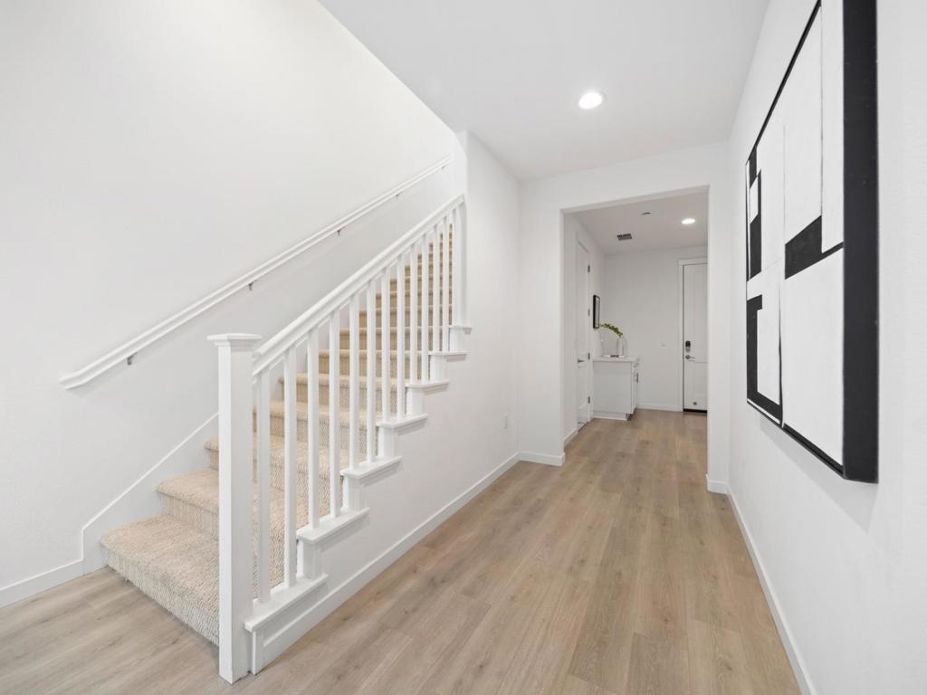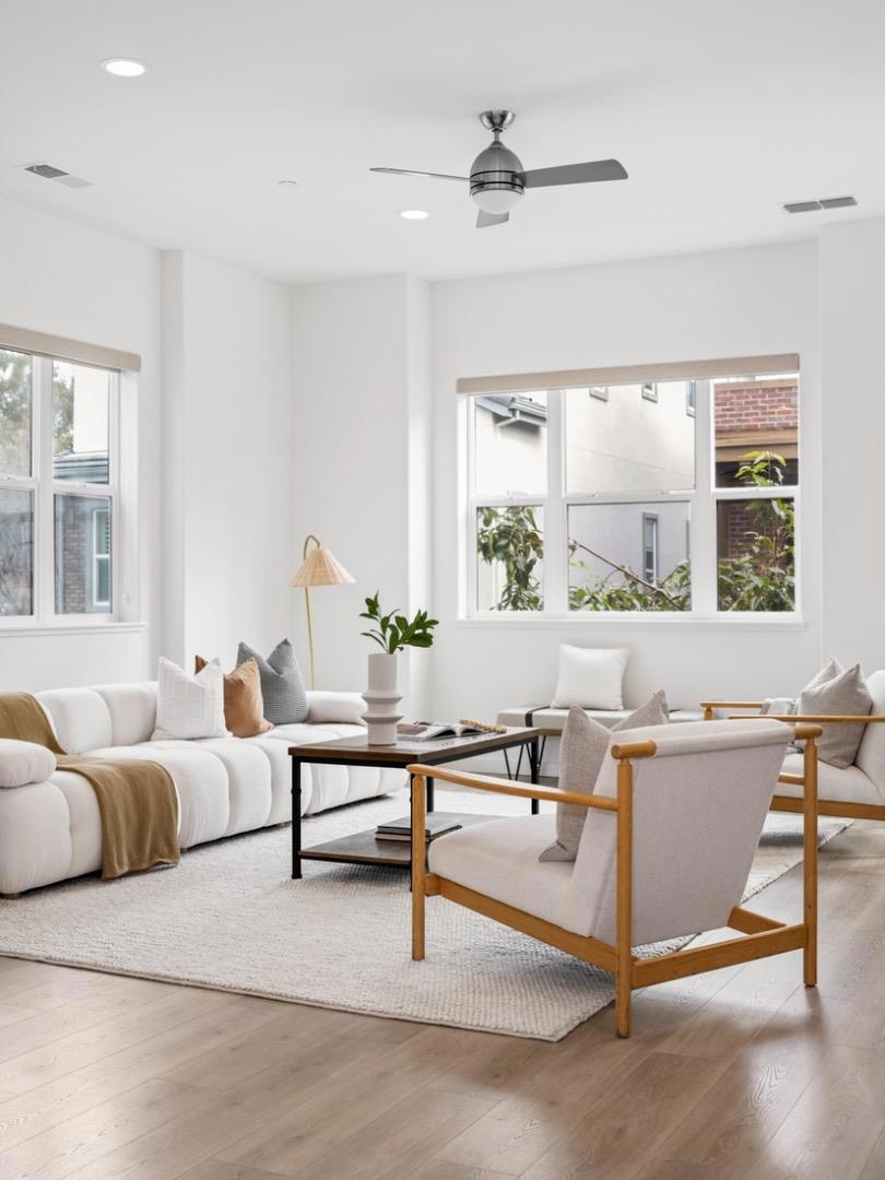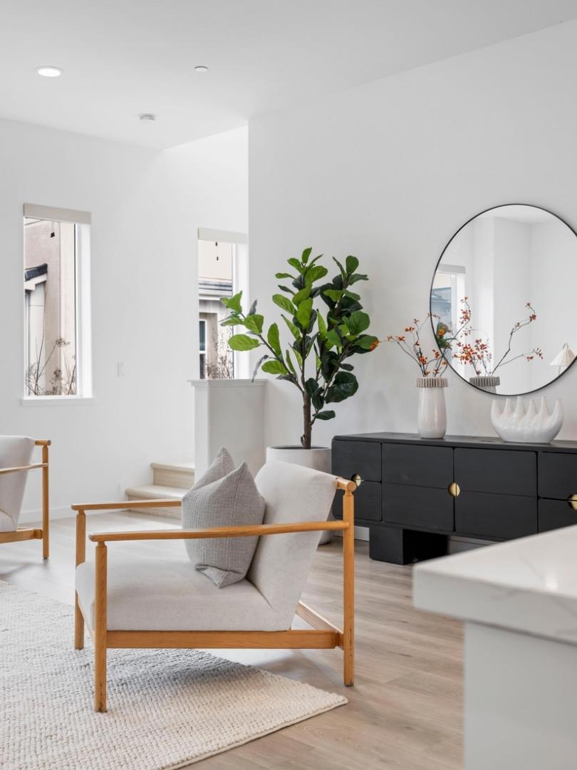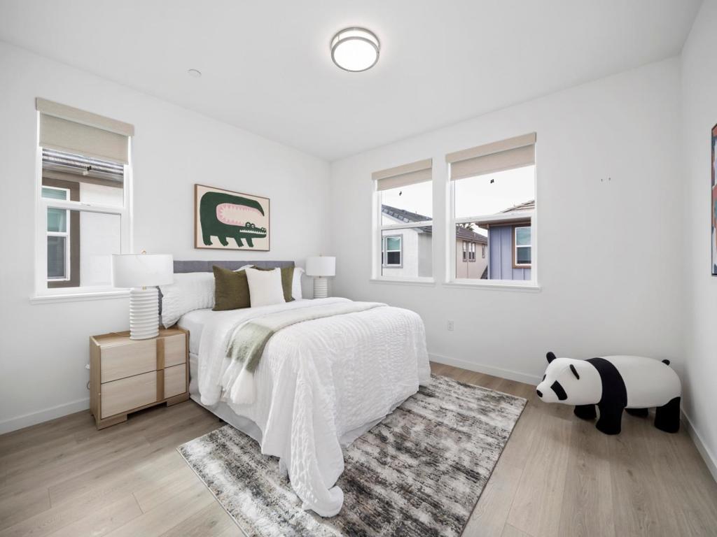Built in 2019, this beautifully appointed 4-bedroom, 3.5-bath single-family home in one of San Joses most sought-after newer communities contains of $77K upgrades. Thoughtfully designed for flexibility, the home features a private ground-level bedroom and full bath ideal for multi-generational living, guests, or a dedicated office. The open-concept main level is anchored by a chef-inspired kitchen with premium European appliances, quartz countertops, sleek cabinetry, and an oversized island perfect for entertaining. High ceilings and expansive windows fill the space with natural light, creating a bright and welcoming atmosphere. Upstairs, the spacious primary suite offers a walk-in closet and spa-like bath with dual vanities, a soaking tub, and separate shower. Well-proportioned secondary bedrooms provide comfort and privacy. Enjoy indoor-outdoor living with a paved side yard and landscapes. Additional features include owned solar panels, EV charging capability, energy-efficient systems, generous storage, and a finished two-car garage. Residents enjoy access to resort-style amenities including a clubhouse, playground, walking paths, garden areas, and BBQ spaces. Ideally located near major commuter routes, shopping, dining, and everyday conveniences in the heart of Silicon Valley.