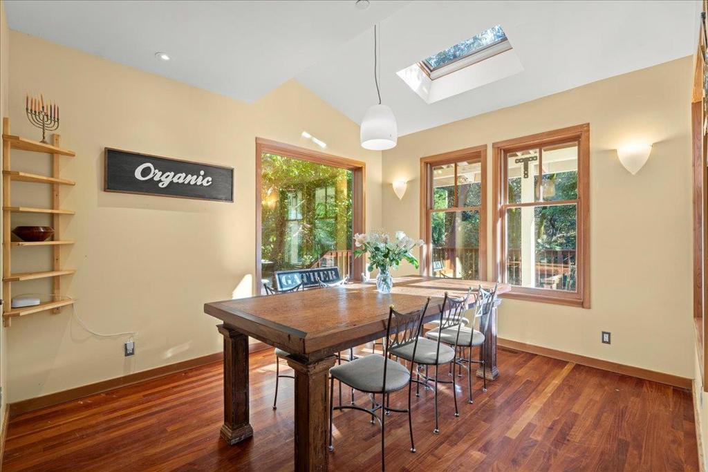 Now offered at $1,297,000, this price improvement repositions a distinctive Bear Creek property with year-round creek access, a private swim hole, and a setting that stands apart. Set among the redwoods, the property offers a rare sense of privacy, natural beauty, and usable creek frontage that is increasingly hard to find. A custom deck and staircase provide direct access to the creek, while additional outdoor spaces throughout the property offer ideal spots to relax and take in the surroundings. Inside, the home features cherry hardwood and bamboo flooring, cherry cabinetry with stone counters, skylights, and large windows that bring in natural light and forest views. A Generac backup generator and private sauna add comfort and functionality, along with features like the walk-in shower and walk-in closet. The layout also offers flexibility with a dedicated office and additional rooms that can serve as extra bedrooms, guest space, or work areas. For buyers who have been watching the market, this updated price creates a compelling opportunity to own a property with character, versatility, and lifestyle features that are not easily replicated in a truly memorable Bear Creek setting, offering both everyday comfort and a unique connection to nature.