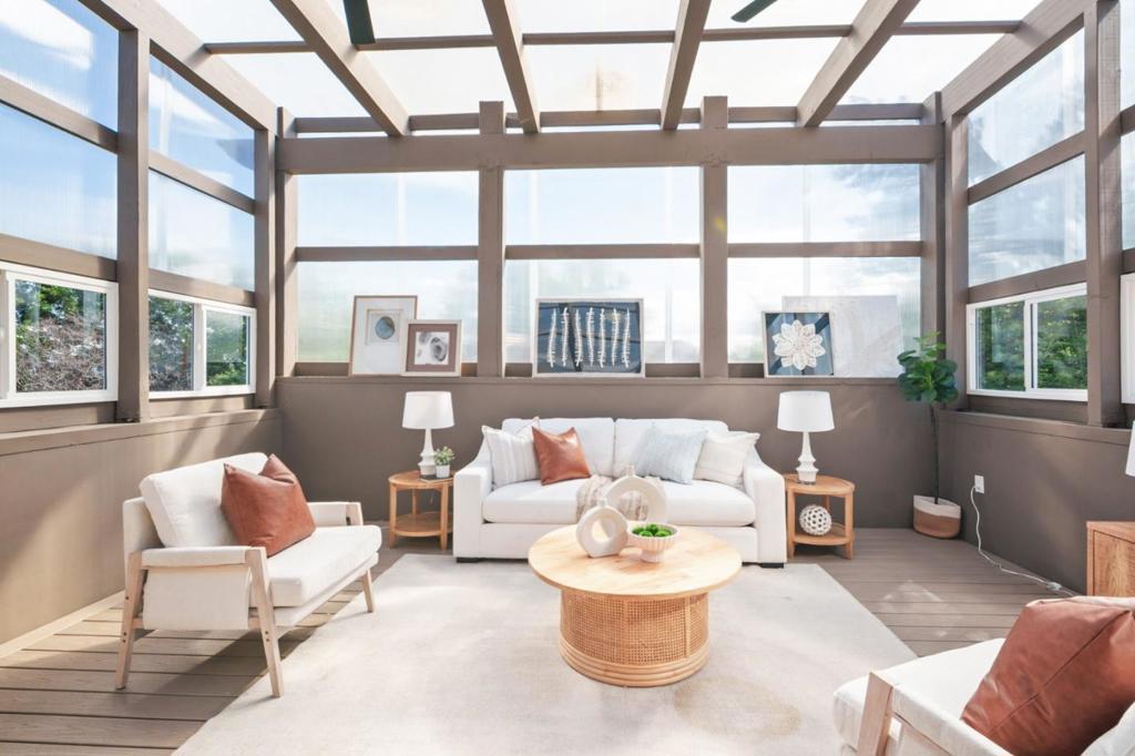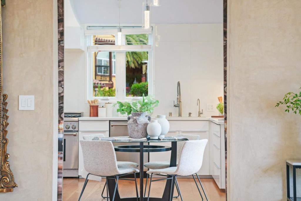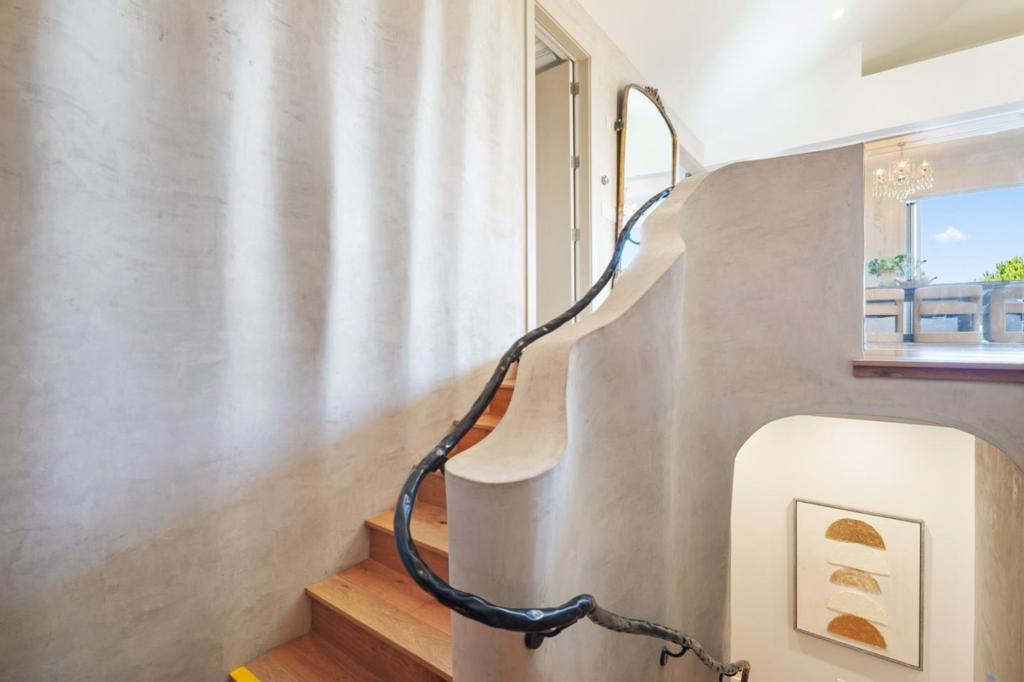 Perched on a scenic hillside with breathtaking Bay views, this home is both a work of art and a testament to craftsmanship. Built in 2020, it comes with a 3BR/4BA main home and a 1BR/1BA ADU featuring its own private entrance. Inspired by European architecture, particularly Antoni Gaudis expressive forms, the design reveals sculptural walls, vaulted ceilings, and skylights that fill every space with light. 5-panel NanaWall doors extend the great room onto a view deck, while a vaulted lounge with lantern chandeliers balances grandeur with intimacy. The chefs kitchen showcases Thermador appliances, porcelain finishes, and custom cabinetry beside a cozy breakfast nook. The primary suite is a serene retreat with a sculptural fireplace, private terrace, and spa-like bath featuring heated floors, a soaking tub, and glass shower. Crafted with quality at every turn, engineered oak floors, Alder Knotty doors, Anderson windows, solid-core interiors, and fire-resistant materials crowned by a lifetime roof, the home offers artistry that endures. Outdoor living includes a warm sunroom, a lush backyard with 30+ kinds of fruit trees, stamped-concrete drive with RV/boat parking, a 2-car garage, and a storage shed. Minutes from freeways and top schools Roy Cloud Elementary and Woodside High.