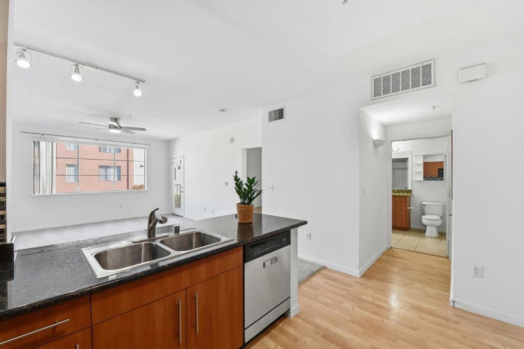 Welcome to vibrant urban living in the heart of San Jose! This charming 1-bed, 1-bath condo at 1060 S 3rd St offers 667 sq. ft. of comfort and style, all within walking distance to downtown San Jose and SJSU. The spacious bedroom includes a ceiling fan and walk-in closet, while the double-entry bathroom adds convenience and flow. The well-equipped kitchen features a dishwasher, microwave, and electric oven with cooktop. Stay comfortable year-round with A/C, ceiling fans, and the ease of in-unit laundry. A private balcony with storage provides a perfect place to unwind. Community amenities include a game room, meeting rooms, gym, barbecue area, courtyard, and a sparkling pool. Additional perks: intercom access, elevator, secured mailroom, and gated underground parking. Combining comfort, convenience, and walkability, this condo is an ideal urban retreat. Don't miss your chance to make this well equipped home your own!