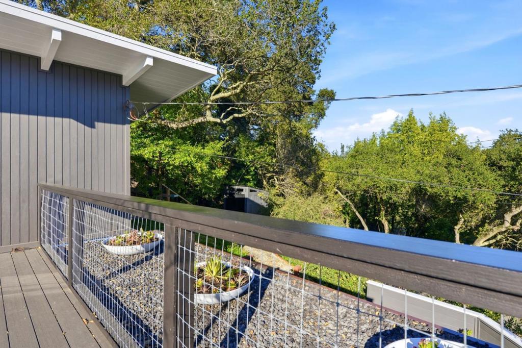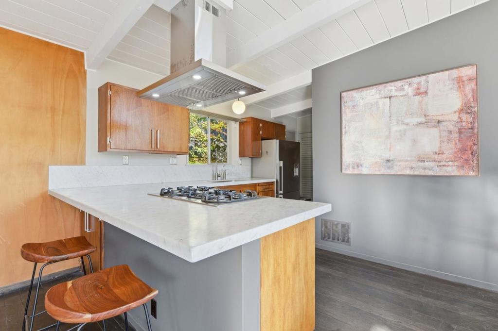 Mid-Century modernists will be delighted with this unique home! Beautiful Mid-Century Modern Woodside home, nestled in The Glens and surrounded by oak trees, atop a large preserve, ready to enjoy hikes. Built in 1959, this home features floor to ceiling glass on the upper level that leads to a large 900+ sq ft deck, making this home perfect for indoor-outdoor living and entertaining. The modern kitchen features gorgeous carrera marble counters and the following stainless appliances: Bertazzoni, Viking, Fisher and Paykel. The upper level also features a large living room with fireplace, 2 bedrooms and 1 bathroom. Downstairs features a large family room, carport access, storage areas, the primary bedroom with private bathroom and access to a private patio outside the primary bedroom.