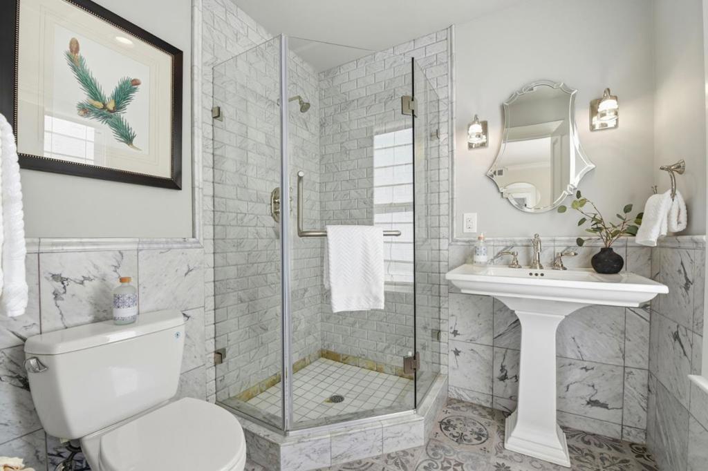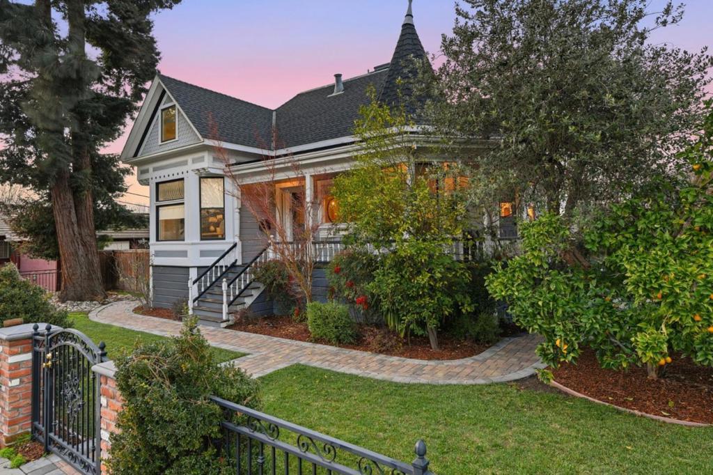 Originally built in 1885, this exceptional Willow Glen residence blends preserved historic charm with a complete, high-end rebuild in 2017. Thoughtfully reimagined, the home offers modern functionality and luxury finishes set on an oversized 12K sf lot in an iconic downtown WG location. The stunning main level is anchored by a chefs kitchen featuring a Wolf range, oven and steam oven, two Sub-Zero refrigerators, wine fridge, granite countertops, natural quartzite island and an incredible walk-in pantry with custom cabinetry and prep space. Ideal for everyday living and entertaining! The primary suite is a true retreat, highlighted by a spa-like bathroom located in the homes round turret, complete with a soaking tub, walk-in shower, heated floors, and designer tile. Timeless craftsmanship shines throughout with restored historic moldings, doors, windows, and hardware, complemented by custom millwork, hardwood floors on the main and upper levels, and a radiant-heated cement floor on the lower level. Major upgrades include a new foundation, roof, electrical, plumbing, HVAC. Outdoors, enjoy a classic wrap-around front porch and a fully fenced and gated yard offering privacy and space. Across from Frank Bramhall Park and just blocks from Lincoln Ave, this is a rare legacy property.