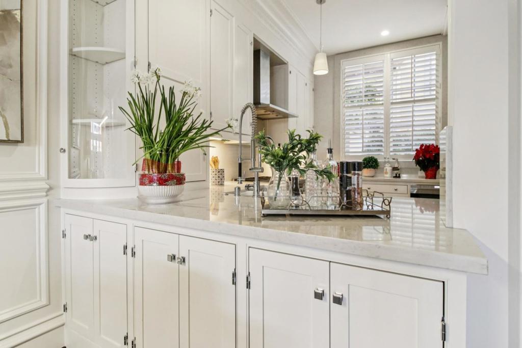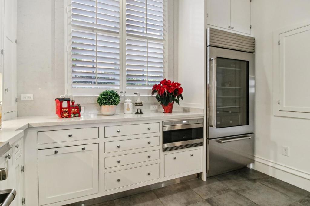 Welcome to one of the finest homes on Santana Row. In the exclusive Villa Cornet, this luxury residence has been meticulously redesigned and remodeled. Its east-facing position captures the vibrancy of Santana Row while remaining quiet, and with only one adjoining wall, it offers exceptional privacy and natural light. The gourmet kitchen features custom cabinetry, quartz counters, a Sub-Zero glass-door refrigerator, Wolf range, oven and microwave, plus a beverage center with Sub-Zero under-counter fridge and plumbed Miele coffee maker. Ebony-stained oak flooring with sound underlayment runs throughout. Custom entertainment cabinetry, a mahogany cadenza, architectural trim, paneling, upgraded casings and baseboards, and a black limestone fireplace mantel add refined detail. Floor-to-ceiling windows pair with custom drapery, wood shutters, and upgraded LED fixtures. The home includes two private patios, a laundry room with washer and dryer, and three bedrooms with ensuite baths, including a primary suite with soaking tub and walk-in closet. Villa Cornet offers a secured entrance, and gated underground parking, and this unit with a private two-car garage with storage, and an EV charger. A rare chance to enjoy luxury living with the convenience and energy of Santana Row steps away!