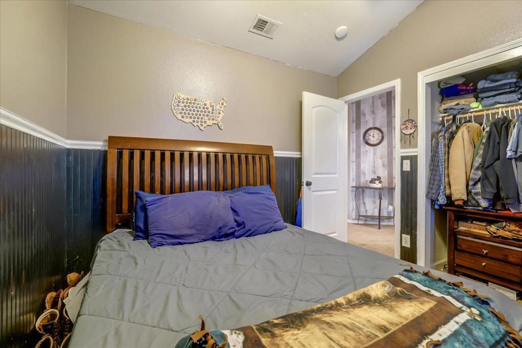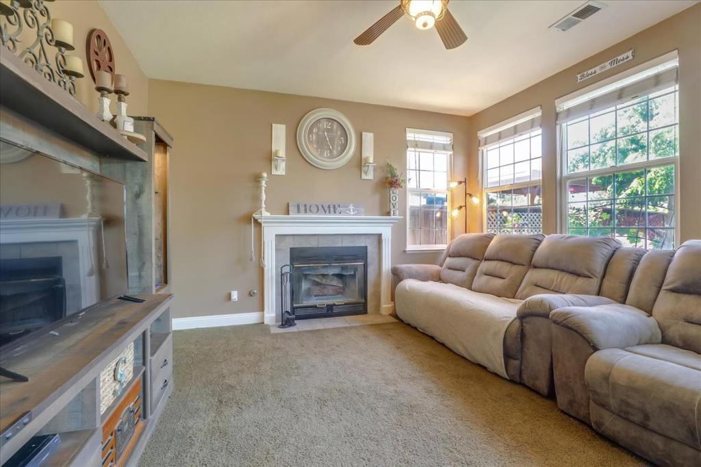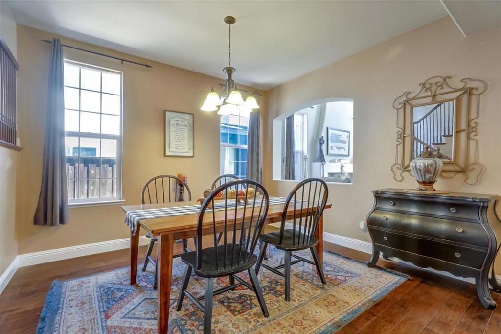 Nestled in a quiet, highly sought-after Hollister neighborhood conveniently located within walking distance to downtown, schools, shopping, restaurants and other amenities, This 4-bedroom, 2.5-bath, 2,463 sq ft two-story home combines charm and modern convenience. Newer exterior paint, hickory hardwood floors, high ceilings, and dual fireplaces create a formal living room and cozy family room with inviting atmosphere, while the kitchen boasts double ovens, a gas cooktop, and painted cabinetry. Upstairs, the primary suite offers dual walk-in closets and a bath, with laundry conveniently located nearby. Outside, lush landscaping, raised garden beds, a patio for BBQs, storage shed, and dog run complete this delightful property perfect for families seeking space, comfort, and a touch of country living in the heart of town.