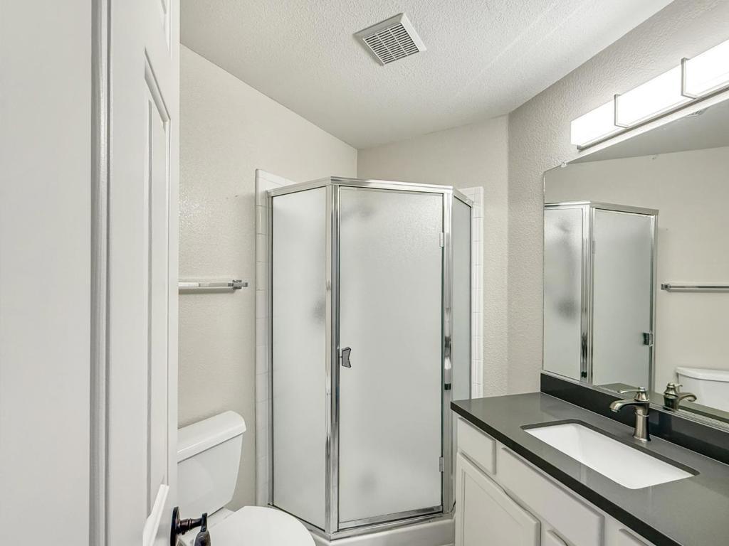 Experience easy, stylish living in this beautiful 2-bedroom, 2-bath condo in the sought-after, gated Mesa Verde community. This single-level home features a bright, open floor plan with laminate flooring and carpeting in the bedrooms. Relax in the spacious living room with a sleek fireplace, or cook and entertain in the kitchen with quartz countertops, stainless steel appliances, a dishwasher, and a gas range. The primary suite offers a walk-in closet and a private bath with a soaking tub and separate shower. Other conveniences include an in-unit washer and dryer, plus a private balcony with built-in storage, perfect for storing extra items. Includes one garage parking space and guest parking steps from the front door. Community amenities include 5 pools, a clubhouse, gym, sauna, and tennis courts. Located minutes from 580 and 880, near BART, Castro Valley, Cal State East Bay, Eden Medical Center, shopping, coffee shops, restaurants, and Lake Chabot. This home offers the perfect blend of comfort, style, and convenience. The private patio is ideal for entertaining, gardening, or relaxing with morning coffee. ***HOME IS VIRTUALLY STAGED*** Minimum 680 FICO and 2.5x rent as income to qualify.