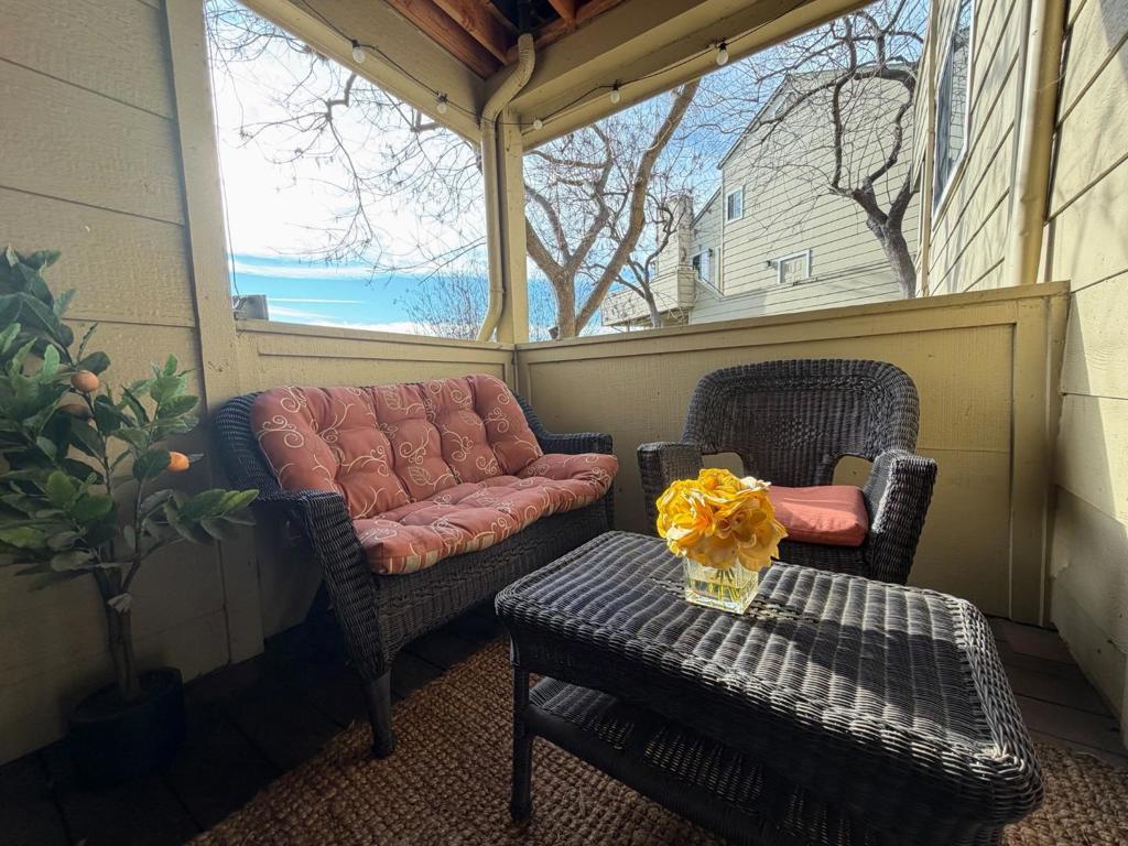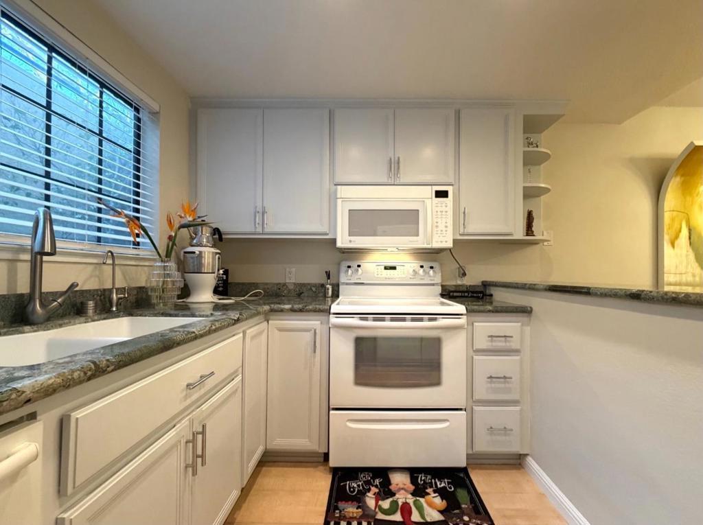 Stylish and move-in-ready condo tucked into the Elk Ridge Estates community on the southwest side of Communications Hill. This elegant, light-filled home offers 1 bedroom, 1 bathroom, and approximately 1,012 square feet of well-designed living space. The open floor plan features LVP flooring on the main level, a cozy fireplace that anchors the living area, and French doors that open to a spacious view deck - perfect for morning coffee, evening sunsets, or entertaining guests. The generous living and dining areas, enhanced by updated lighting, flow seamlessly into the kitchen, which is thoughtfully appointed with granite countertops, wood cabinetry, and modern all-electric appliances. An oversized primary bedroom provides a peaceful retreat and showcases a large picture window framing scenic valley views. Additional highlights include central heating and air conditioning with a programmable energy-efficient thermostat, an indoor laundry area with washer and dryer included, a private detached one-car garage, and an additional assigned parking space. Conveniently located near schools, shopping, dining, and major freeway routes for easy access to downtown San Jose and Silicon Valley tech hubs. HOA dues include cable, water, garbage, and more making this home an exceptional value.