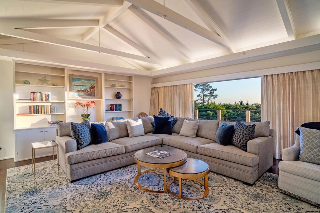 Located on the ocean side of Padre Lane near The Lodge and Pebble Beach Golf Course, this single-level Post-Adobe home sits on one of the finest view lots in Pebble Beach. An expansive southwest-facing deck showcases sweeping views of Point Lobos and the Pacific coastline extending to Big Sur. Upon entering, you are welcomed into a comfortable living room with vaulted ceilings and hardwood floors. The space opens to the dining area and kitchen, with sliding glass doors that lead to outdoor living areas. The spacious, sun-splashed, ocean-view lot is the star of the show, offering exceptional potential. The home features three bedrooms, four bathrooms, and 2,750 square feet of light-filled living space designed to enjoy the idyllic Monterey Peninsula climate.