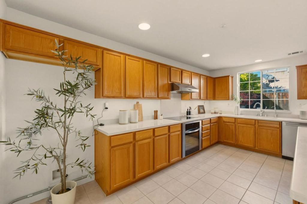 No HOA! Located on a quiet cul-de-sac in desirable Union City, this home offers an ideal blend of comfort, efficiency, and everyday convenience. This well-maintained home features fresh exterior paint, a classic terracotta tile roof, and warm hardwood floors, complemented by double-pane windows and a high-efficiency HVAC system for year-round comfort. A 30-panel solar system and tankless water heater provide outstanding energy savings. The spacious kitchen serves as the heart of the home, highlighted by an oversized island perfect for casual dining, meal prep, and entertaining. The primary suite offers a peaceful retreat with a large walk-in closet. Milgard French patio doors extend the living space outdoors to a beautifully landscaped backyard featuring a pergola, tranquil fountain, fruit trees, real grass lawn, and a storage shedideal for relaxing or hosting gatherings. Additional features include an EV-charging-ready garage, built-in fire sprinkler system, and smart security with Ring and Arlo outdoor lighting and cameras, plus a Vivint alarm system for added peace of mind. Enjoy a prime location near Town Estates Park, Kitayama Elementary School, Union Landing Shopping Center, BART, Highway 880, and the Dumbarton and San Mateo Bridges.
