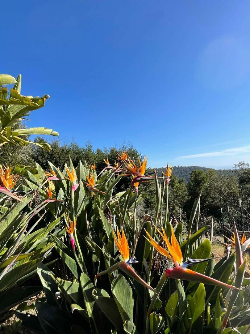 Elevated retreat at the end of a quiet court offering sweeping ocean and mountain views, privacy and a tropical hilltop setting featuring birds of paradise, leucadendron, pincushions, proteas, peonies. Approx. 4.7 acres, overlooking Monterey Bay and Pacific Ocean, sunsets galore. Main residence features 3 bedrooms and 3 bathrooms, approx. 2,171 sqft., with vaulted ceilings and abundant natural light enhancing the open layout. The renovated kitchen showcases premium Sub-Zero and Wolf appliances; bathrooms are thoughtfully updated with high-end finishes. Permitted 1-bedroom, 1-bath ADU 460 sqft. above the 3-car garage is ideal for guests, extended family, or rental income. Additional space could provide storage, gym, yoga studio, or office. Southwest exposure perfect for gardening the established gardens including orange, Fuji apple, Fuyu persimmon, peach, plum, fig, avocado, lemon, cherry, and apricot along with kiwi and grape vines. Relax in the swim spa with panoramic ocean views or go for a walk under the redwoods on the private hiking trails. Water tanks, solar, and backup generator support off grid independent living. Located about 25 min. to Aptos Village, beaches, and trails. Offering rare privacy, usable land, and breathtaking views within reach of everyday conveniences.