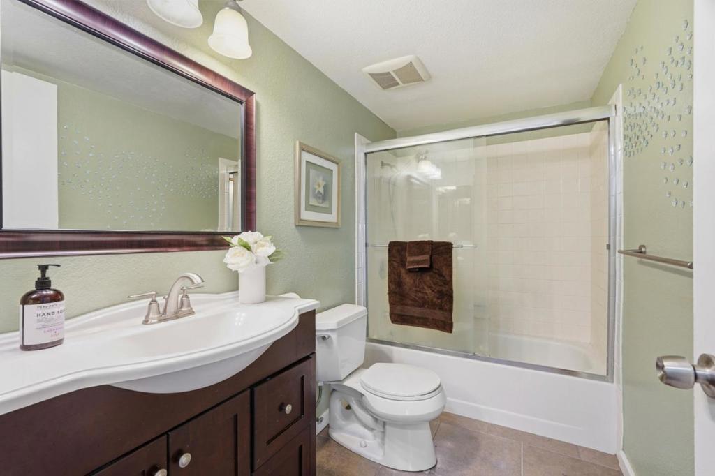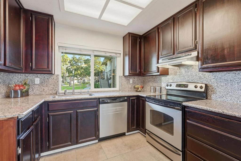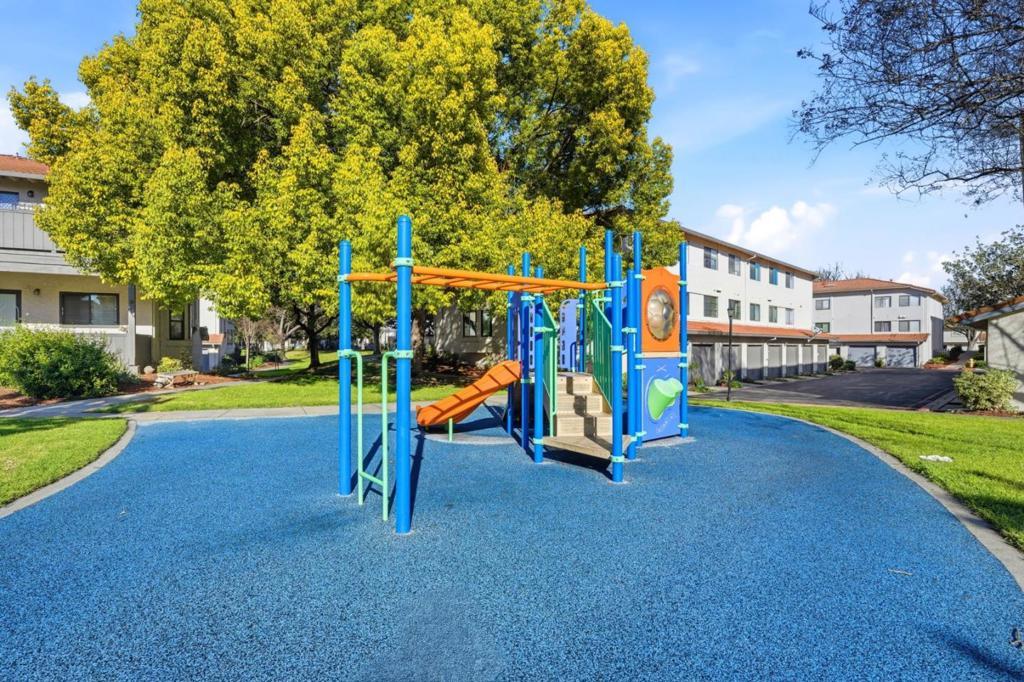 A rare, bright end unit location, no front neighbors, open greenbelt & play area in front of unit. Great Location and ample guest parking , quiet community with pool, spa, tennis courts and club house. A spacious 3 bedroom, 2 full bath, open floor plan with living & dining room. Bright Kitchen with lots of cabinet storage and modern appliances. This unit includes vinyl double paned windows throughout, updated bathrooms, inside washer & dryer, laminate floors, enclosed tandem 2 car garage, convenient shopping, restaurants, freeway 101 & 85 nearby.