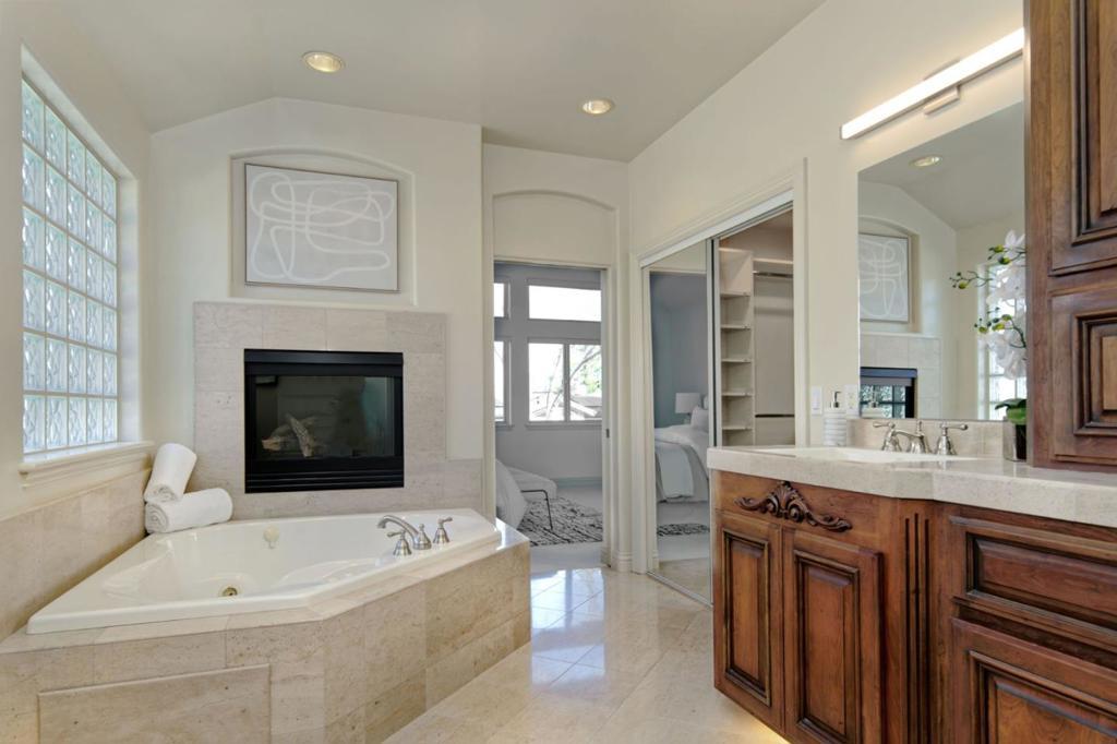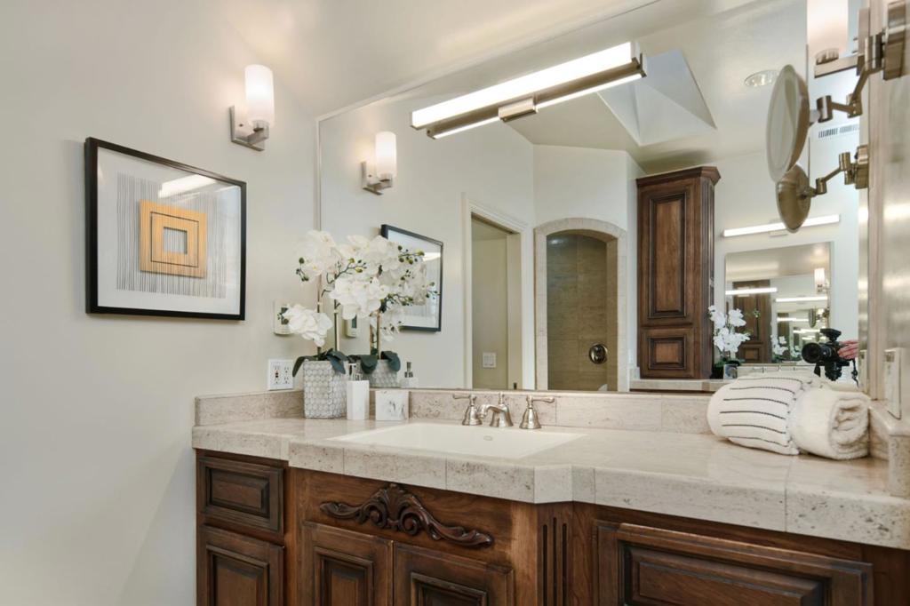 This beautifully appointed home offers approximately 3,208 sq ft of refined living space in the heart of desirable Almaden Valley with top schools: Williams, Bret Harte & Leland. One of the 4 bedrooms is on main floor, directly across from a full bath. Manicured landscaping, a stacked-stone facade, and a custom mahogany front door. Inside, soaring ceilings, elegant finishes, and abundant natural light highlight formal and casual living areas, including a stunning gourmet kitchen with premium appliances, custom cabinetry, and an oversized island ideal for entertaining. The luxurious primary suite features a spa-like bath with heated floors, soaking tub, and fireplace, while flexible living spaces accommodate a home office or guest room. Step outside to a park-like backyard designed for relaxation and gatherings, complete with patios, outdoor kitchen, lush lawns, mature trees, and thoughtful amenities throughout making this home a perfect blend of comfort, style, and functionality.