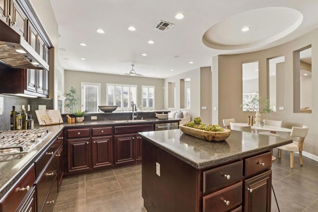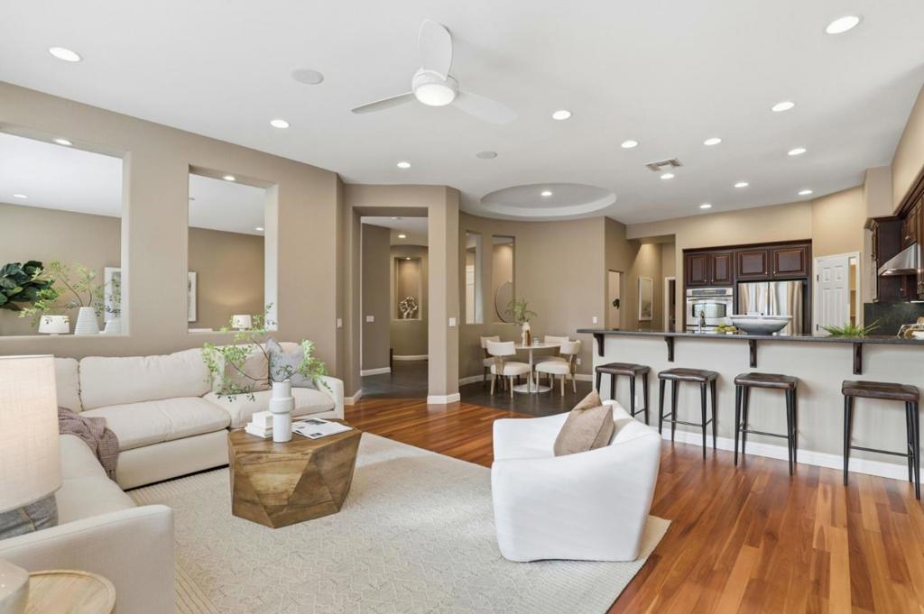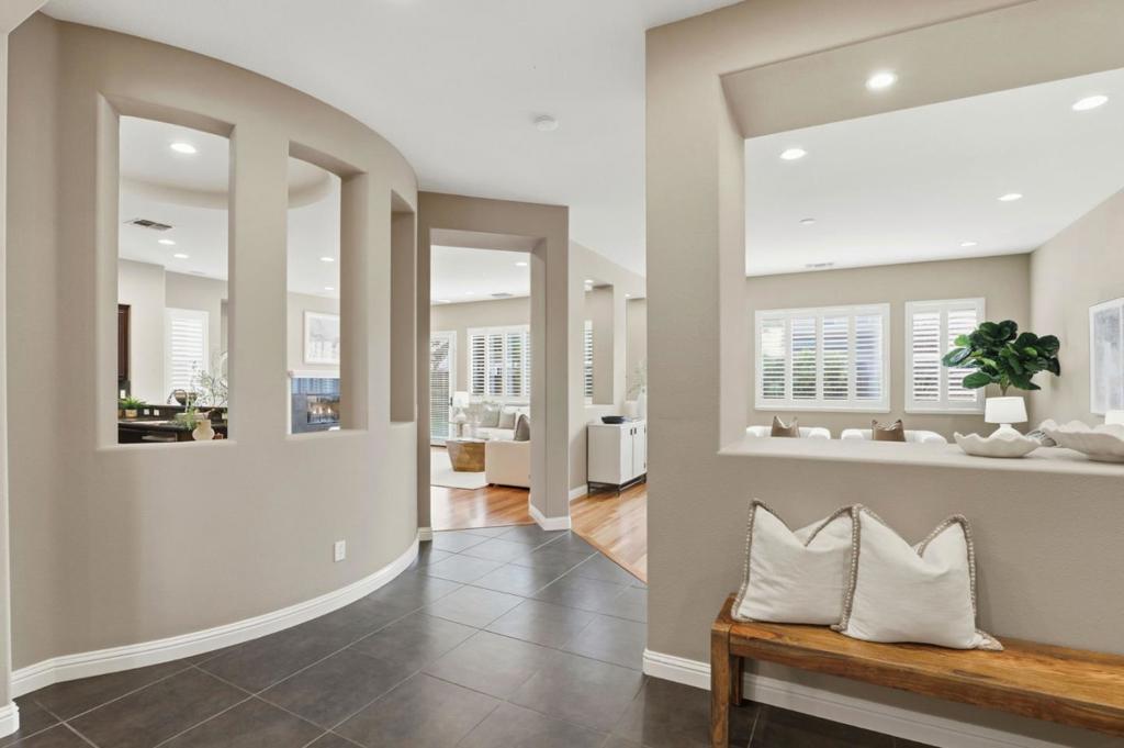 This elegant California-style single-story residence offers a rare combination of comfy spaces, elegance, and airy vibes. Built in 2005, the home features four bedrooms, two and one-half bathrooms in approximately 2,727 square feet well-appointed living space on approximately 7,811 square foot lot. High ceilings, shutters throughout, and expansive floor plan. The open kitchen with breakfast nook and bar seating flows seamlessly into the family room with fireplace, ideal for both everyday living and entertaining. A formal dining room and separate living room provide versatility and a more tailored living experience. Integrated speakers throughout the home enhances the joyful ambiance. Other features include central heating/air conditioning, new attic insulation with ample attic storage, dedicated laundry room with a sink, and a deep attached two-car garage. The stucco exterior and tile roof reflect timeless California style, with low-maintenance landscaping and a peaceful back patio area. Close to highly rated El Toro Elementary School, in the Ann Sobrato High School area, and close to upscale shopping and popular downtown Morgan Hill restaurants, this home delivers refined single-story living in a highly desirable location.