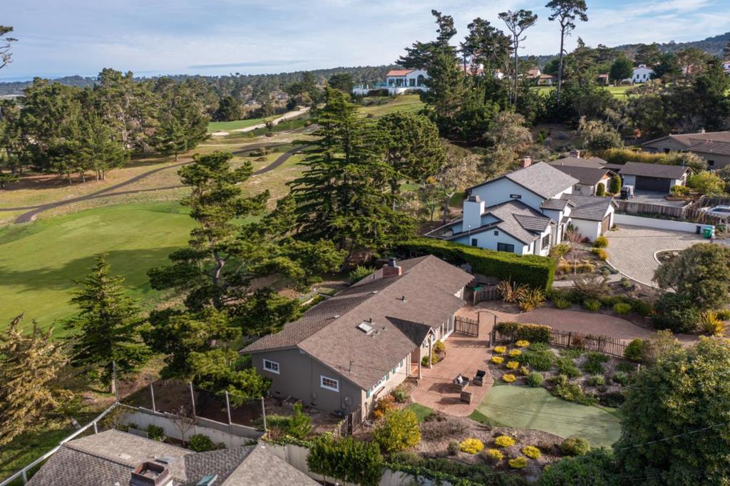 Charming Pebble Beach cottage in highly desired Country Club West. You will be impressed by the double fairway views of MPCC Shore #1 and Dunes #18 with strong peeks of ocean across to Santa Cruz Mountains. The front entrance includes a serene landscaped yard w/putting green and spacious paver patio perfect for relaxing or entertaining. The floor plan features a kitchen with abundant counter and storage space open to the dining area which flows to an oversized living room with wall-to-wall windows. Watch golfers going by while sitting in front of your fireplace or on the fully enclosed back patio with raised flowerbeds. Primary bedroom is ensuite while two guest bedrooms with large windows also enjoy expansive golf course views. Deep 2-car garage includes a separate laundry room and connects to a workshop which has lots of extra storage. Ideally situated 9,700 sqft lot offers a significant opportunity to expand if desired along with extra water credits. Here is your opportunity to live the Pebble Beach lifestyle within minutes of the MPCC clubhouse and ocean.