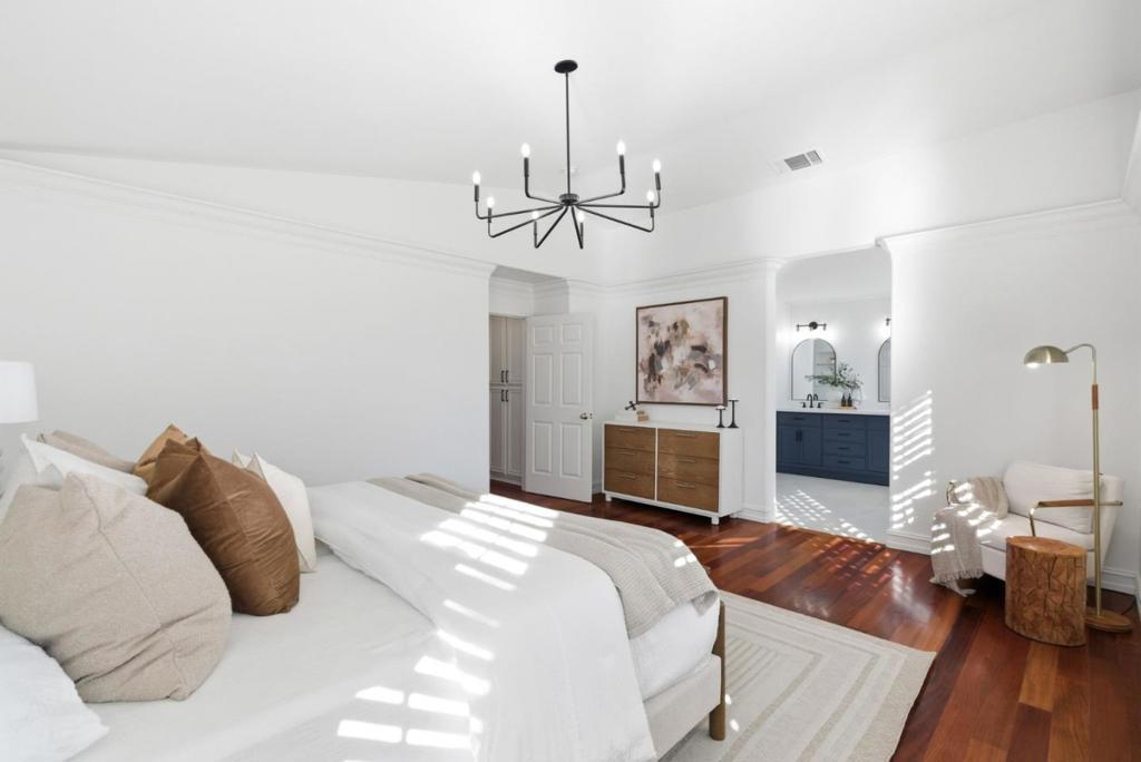Luxury in the heart of Morgan Hill Open flowing floor plan & soaring ceilings create an expansive light filled first impression Brazilian cherry wood floors plantation shutters & LED lighting deliver timeless elegance Chefs kitchen designed for entertaining with solid wood cabinets granite counters oversized center island generous pantry & new appliances including 5 burner gas range Seamless outdoor flow connects to private dining rm keeping everyone in the experience Desirable 1st floor bd with adjacent full ba ideal for guests executive office or multigen living Spa inspired primary suite impresses w/ vaulted ceilings glass shower freestanding soaking tub dual vanities heated flrs & walk in closet Updated hall ba & lg laundry rm serve 3 well proportioned secondary bds Resort style outdoor living - pergola raised garden beds mature fruit trees Japanese maples & low maintenance paver hardscape Premium amenities include 5.9KW solar whole house RO water filtration/softener video doorbell NEST thermostats new interior paint energy efficient LED lighting custom shutters crown molding & outdoor gas fire pit Prime South SV location walk to vibrant downtown dining shopping farmers markets wine trail hiking biking EZ commutes & top rated schools Minutes to wineries Live the good life!