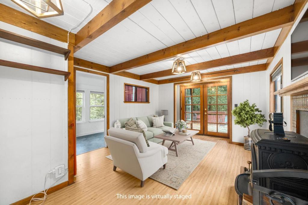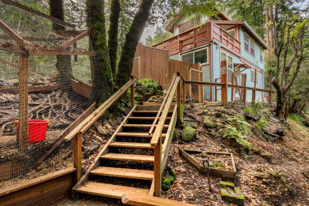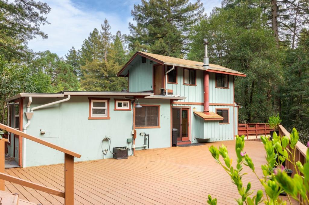 Welcome to this charming 3-bedroom, 2-bathroom home nestled in the serene city of Ben Lomond. With a spacious 1,250 sq ft living area on a generous 25,352 sq ft lot, this property offers both comfort and privacy. The kitchen is well-equipped with tile countertops, a dishwasher, microwave, refrigerator, and an electric oven, making it perfect for culinary enthusiasts. Enjoy the convenience of an eat-in kitchen and the warmth of a cozy fireplace, thanks to the pellet stove heating. The home features beautiful wood flooring throughout, adding to its rustic appeal. Relax and unwind in the spa/hot tub, an ideal spot for leisure. An inside laundry area with a washer and dryer is provided for your convenience. This property also comes with unique amenities like a poultry coop. It is located within the San Lorenzo Valley Unified School District. With no family room, the emphasis is on efficient use of space, making it a perfect retreat in a peaceful setting.