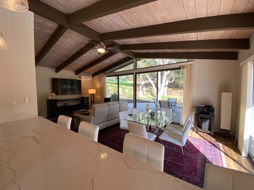 Tucked away on a quiet cul-de-sac in one of Portola Valleys most desirable neighborhoods, this inviting fully furnished home offers privacy, comfort, and a seamless connection to its natural surroundings. Thoughtfully designed with generous living spaces, the residence is filled with natural light and framed by serene views of mature trees and landscaped grounds. The main living areas flow effortlessly, creating an ideal setting for both everyday living and entertaining. Large windows bring the outdoors in, while well-proportioned rooms provide flexibility for a variety of lifestyles. The kitchen is functional and welcoming, offering ample storage and workspace, and opens naturally to the homes dining and living areas. Bedrooms are comfortably sized and positioned for privacy, making the home well-suited for families, professionals, or those seeking a peaceful retreat close to Silicon Valley. Outdoors, a sparkling swimming pool creates a resort-like atmosphereperfect for relaxing, entertaining, or enjoying Portola Valleys mild climate. Conveniently located near top-rated Portola Valley schools, scenic hiking and biking trails, and with easy access to Sandhill Road and Highway 280, this home offers the perfect balance of tranquility and accessibility.