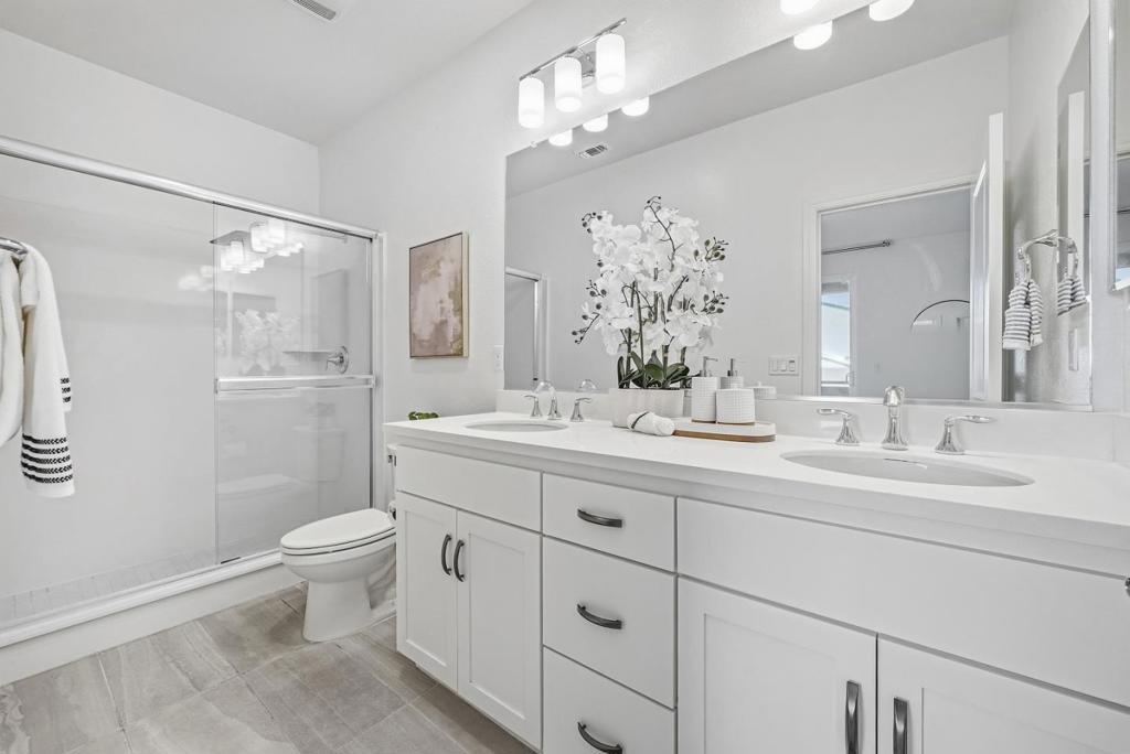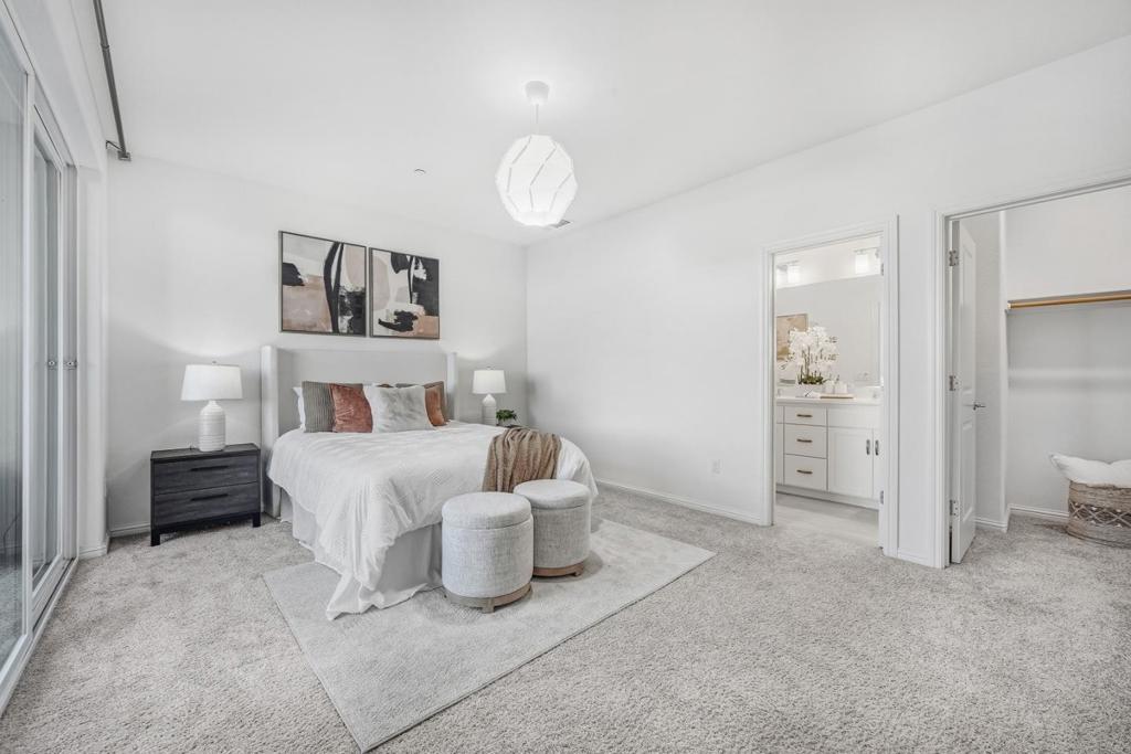 Welcome to this modern townhome offering 3 bedrooms and 3 bathrooms in the convenient Berryessa area, with the entrance facing Newbury Park. The main level features an open floor plan with a light-filled kitchen and family room combination, complemented by recessed lighting throughout. The U-shaped gourmet kitchen boasts large quartz countertops, a stylish backsplash, stainless steel appliances, and ample white cabinetry. The family room opens to a private balcony, and this level also includes a bedroom and a bathroom with a shower-over-tub. Upstairs, you will find two suites. The primary suite offers a spacious bedroom with its own private balcony, a walk-in closet, and a bathroom featuring a double vanity with quartz countertops and a stall shower. The second suite also includes a walk-in closet and a bathroom with a quartz countertop and a stall shower. A washer and dryer are conveniently located on the upper level. Ideally located in Berryessa, this home blends modern comfort, functionality, and everyday convenience. The San Jose BART station, Safeway Plaza, Costco, H-Mart, and 99 Ranch Market are just minutes away, with easy access to Highways 101 and 680. Also it is within walking distance to google and meta shuttle stops! Do not miss this great opportunity!