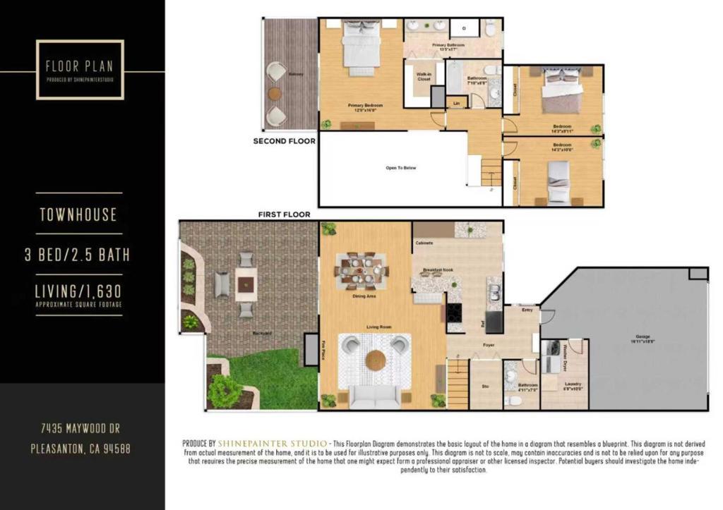 Welcome to this well-kept home in highly desirable Stoneridge Townhouses community. Nestled on a top location of Maywood Dr, this charming home features 3 beds & 2.5 baths with newer flooring throughout the entire house offering comfort and style in every room. A long & spacious driveway leading to a two-car garage, providing ample parking and storage. A gated front patio creates private and welcoming entry perfect for relaxing or entertaining. The kitchen is thoughtfully designed with modern induction cooktop, breakfast nook & abundant cabinetry, ideal for both everyday living and hosting. Upstairs, the primary suite is a true retreat with an en-suite bathroom, double sink vanity, customized walk-in closet, and a private balcony for refresh moments outdoors. Low-maintenance backyard is enhanced with elegant pavers and beautiful plants, offering a serene outdoor space. Water softener & filter, 100-inch projector screen included. HOA covers water for the unit, roof, gutter maintenance, exterior painting and more. HOA also provides a clubhouse, swimming pools, tennis courts, etc. Ideally located near BART, shopping, dining, and with quick access to I-680/580, this home combines relaxation, convenience, and an outstanding lifestyle with award-winning schools in Pleasanton.