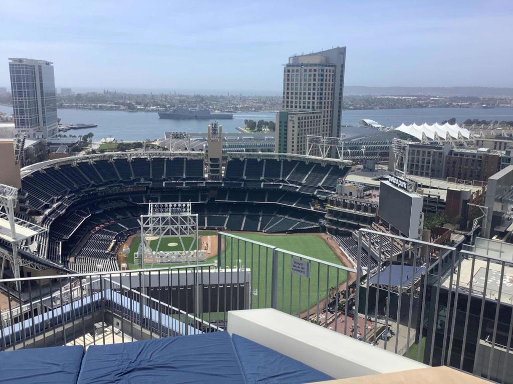 This industrial, spacious loft with an amazing floor plan is ready for love. Live in one of the most sought-after communities with incredible amenities including an in-building movie theater, gym, and rec room! Enjoy unrestricted rooftop access to a gorgeous community area with amazing views of Petco Park! Come home to an enclosed, safe, internal space with cathedral ceilings, expansive steel-framed windows, gorgeous wood floors, and modern finishes! Spacious entertainment area flooded with natural light, with central air conditioning and Google Home set up, making this smart home perfect for indoor lounging. Your luxurious open-concept kitchen comes ready with spacious granite countertops, a dining bar, and stainless-steel KitchenAid appliances. Concealable in-unit laundry also installed! 1 GB Google Webpass Internet and a secured parking space are also included in the rent! Your new home is perfect for planting roots! 24-hour front desk/security and secure garage parking is available for your peace of mind. Right in a walkable location - steps to Padres Stadium, dining options, shops, entertainment, and public transportation!