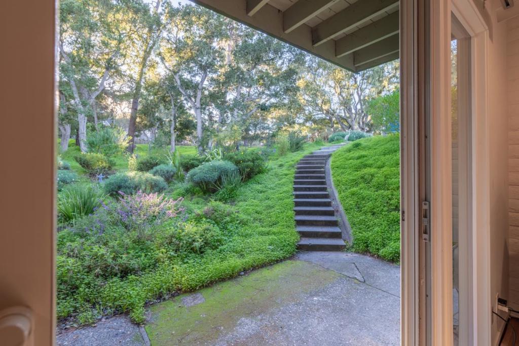 Find yourself surrounded by greenbelt in the beloved, private Alta Mesa neighborhood of Monterey. The distinctive symmetrical architecture of this quiet two-story home surrounds a skylight-topped central staircase. The ground floor features living and dining areas with built-in bookcases, a large eat-in kitchen and the main bedroom. Three balconies and four skylights provide enchanting views of the forest environment. The lower level comprises three bedrooms, a family room/office, laundry, storage/hobby and mud rooms. Fireplaces on each floor add warmth, with an efficient gas insert in the main bedroom. Abundant storage includes overhead and sub-floor compartments. The location is ideal - less than a half-mile from Del Monte Center and under a mile to downtown Monterey and the beach. Its 29,000+ sqft rounded corner lot offers abundant foliage, with mature redwoods, oaks and pines. It has had many upgrades over the last few years.New driveway and two-car garage, remodeled frontage, drought-tolerant landscaping, kitchen and lighting work, tankless water heater, water filtration/softening, multi-camera security system, and bamboo flooring throughout. The exterior and most of the interior were just painted. There is plentiful parking on a wide, 180-foot long semicircular driveway.