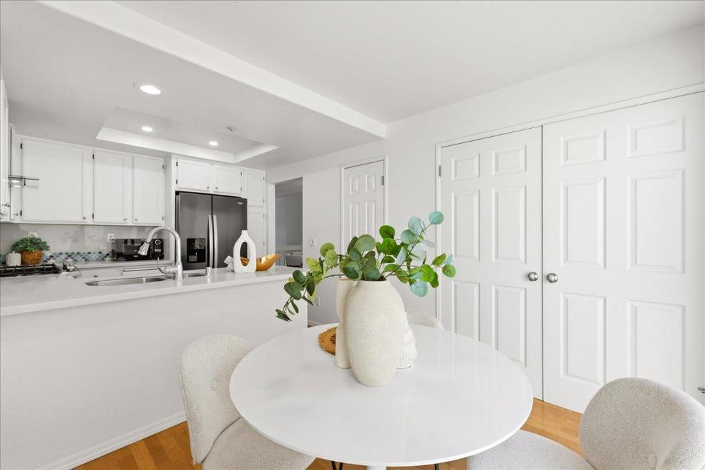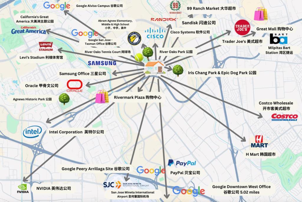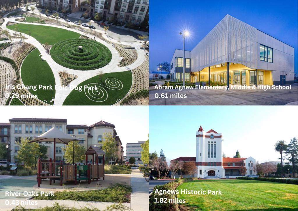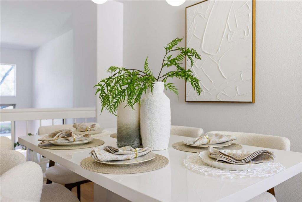 Highly desirable Galleria community at River Oaks! This bright and modern townhouse features soaring ceilings and large windows that fill the home with abundant natural light. The spacious living room showcases elegant flooring and an open layout that creates an inviting atmosphere for both everyday living and entertaining. The remodeled kitchen features stylish countertops, modern cabinetry, and quality appliances, offering both functionality and contemporary design. Upstairs, the generous primary suite provides a relaxing retreat with ample closet space and a upgraded bathroom. Additional bedrooms offer flexibility for guests, a home office, or growing families. Located in a well-maintained community with low HOA, which covers amenities such as a swimming pool, garbage service, and common area maintenance. Walking distance to the newly built Agnew Elementary, Middle, and High Schools (K12). Conveniently located near Highways 880, 101, and 237, as well as VTA Light Rail and BART, with shuttle pick-ups for Google and Meta nearby. Enjoy easy access to several parks, restaurants, shops, and grocery stores at River Oaks, Rivermark Village, and Great Mall!