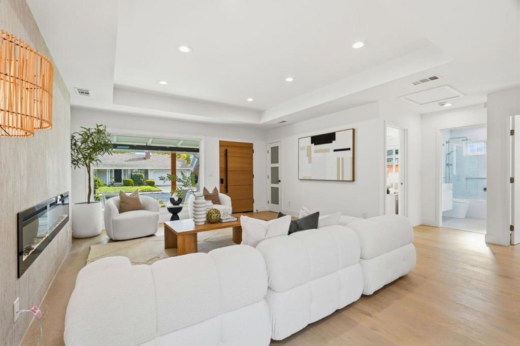 Welcome home to 2127 Talia Ave, at the stunning newly expanded constructed and completely gutted to the studs true like-new living experience. 4 beds 2 baths thoughtfully designed to meet all your living space need single story home in the heart of Santa Clara. NEW roof , Luxury engineered hardwood floors, 96 inch electric fireplace, chefs dream modern kitchen featuring a sleek touchless range hood, microwave drawer, wine cooler, custom Euro-cabinetry, Hansgrohe fixtures, efficiency Navian tankless WH, contemporary black aluminum & white laminate (privacy) glass garage door, bay window in the kitchen offers a pleasant view and added architectural character, large back yard patio accessible from both the living room and primary bedroom, custom master suite walk in closet w/walk in with auto LED light sensor, gorgeous open-concept floor plan is filled with natural light from stunning oversized premier Anderson Window creating a bright and inviting living environment. This gem is designed to meet all your needs in one of Santa Claras most desirable neighborhoods.