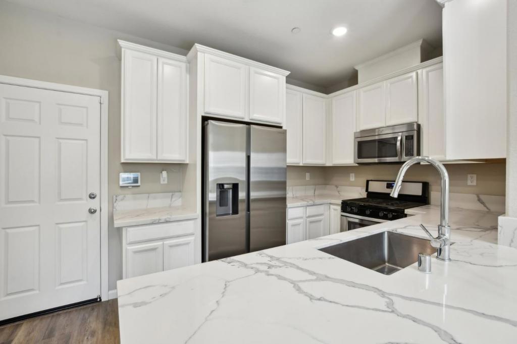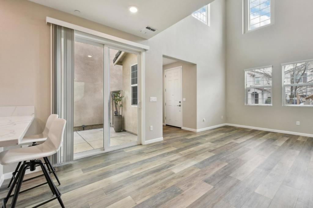 Welcome to this beautifully maintained 2-bedroom, 2.5-bath single-family home in a desirable Sacramento community. Offering 1,309 square feet of thoughtfully designed living space, this modern residence features a bright open-concept layout with soaring ceilings, oversized windows, and wood-look flooring throughout. The stylish kitchen showcases white cabinetry, sleek quartz countertops, stainless steel appliances, and a convenient breakfast bar overlooking the dining area perfect for everyday living and entertaining. Upstairs, youll find two roomy bedrooms, each with walk-in closets and updated quartz vanities. Enjoy a private outdoor patio space and the convenience of a 2-car garage with extra storage. Located just blocks from schools, shopping, dining, Costco, and major freeways for easy commuting. A rare find in a sought-after community! Eligible for $10,000 forgivable loan (no payments, no interest) to cover closing costs, rate buy-down and/or down payment. 100% financing available with NO MI.