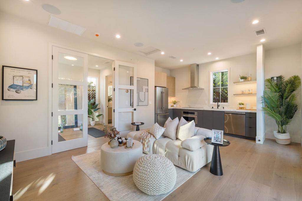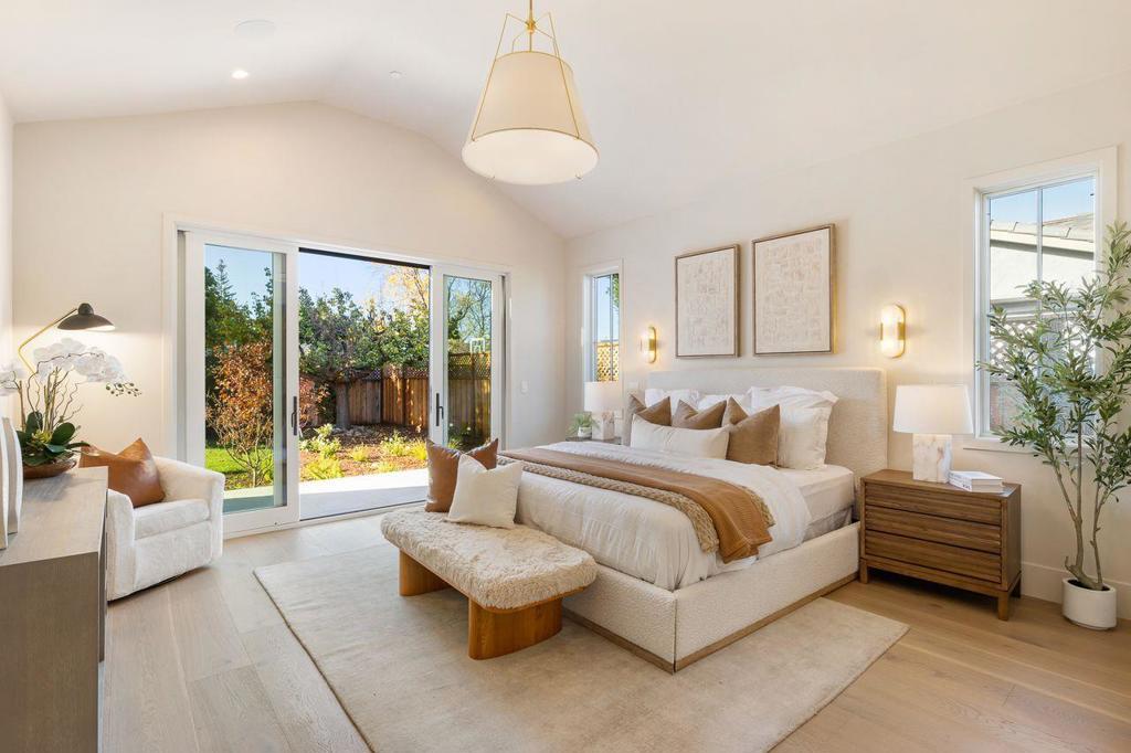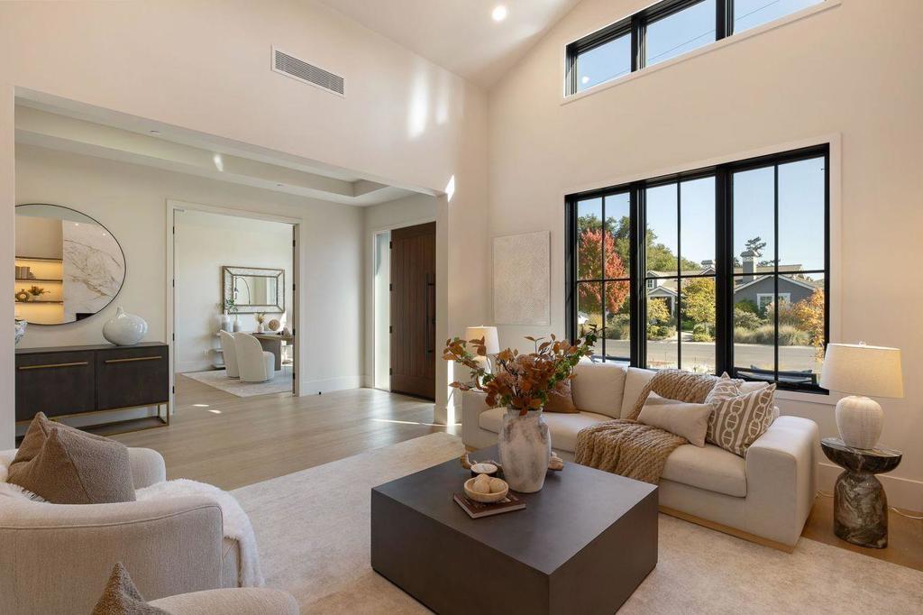 Brand New - Setting the Benchmark for Luxury, Design and Sustainability. Just completed in one of the most desirable neighborhoods of N. Los Altos, this modern, single-level home is a showcase of craftsmanship and quality with white oak floors, imported stone surfaces, high-end Shinnoki cabinetry and champagne bronze fixtures. Skylights and soaring ceilings enhance the sense of openness & light, while oversized 10-foot stacking glass doors offer a seamless connection to the outdoors with unimpeded views. Designed for modern sustainability, the home is all-electric with owned-solar power combining high efficiency and exceptional comfort. The 6 BR 5.5 Bath layout centers on a spacious great room with wine room & designer kitchen, complemented by a formal living room & sophisticated lighting. The primary suite is a true retreat with 2 walk-in closets & spa-like bath with heated floors. A bedroom suite just off the foyer is ideal as an office. A separate wing includes a junior master suite, 2 more BRs & hallway bath. The attached ADU provides flexibility for extended family, guests, or added living space. Beautifully landscaped grounds and perfect location less than a mile from the Village with access to acclaimed schools. A home at the pinnacle of new construction in N. Los Altos.