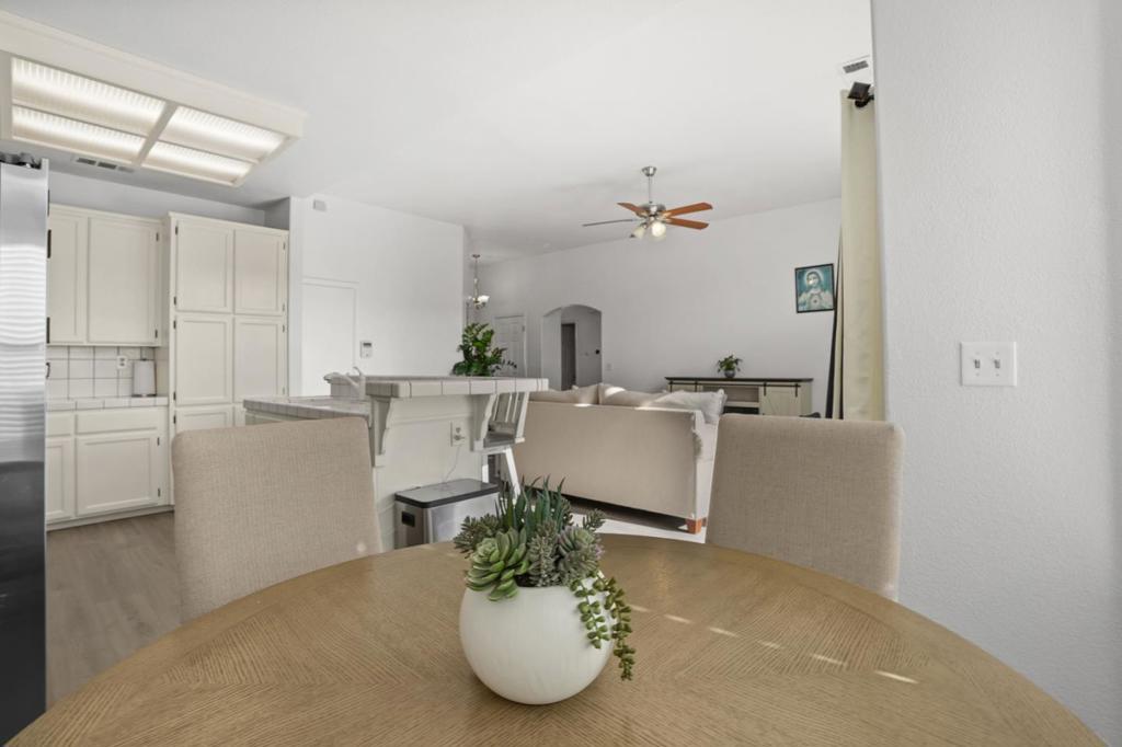 Impressive gated community in a prime location! This wonderful single-story home offers 3 bedrooms and 2 bathrooms with a thoughtfully designed open-concept floor plan. Vaulted ceilings enhance the sense of space and natural light throughout the main living areas. Recent upgrades include newer flooring, fresh interior paint, and a newer air conditioning system, providing comfort and peace of mind. The home flows seamlessly from the living and dining areas to the kitchen, making it ideal for everyday living and entertaining. Conveniently located near shopping centers, dining, and essential amenities, this home combines comfort, style, and location. A great opportunity to enjoy single-level living in a secure, well-maintained community.