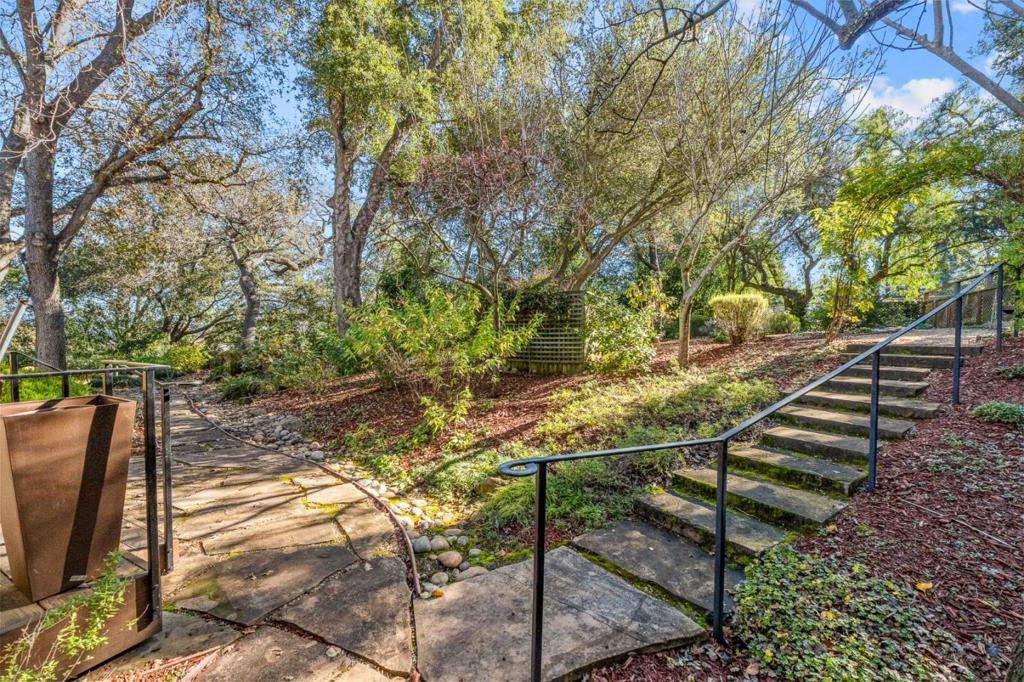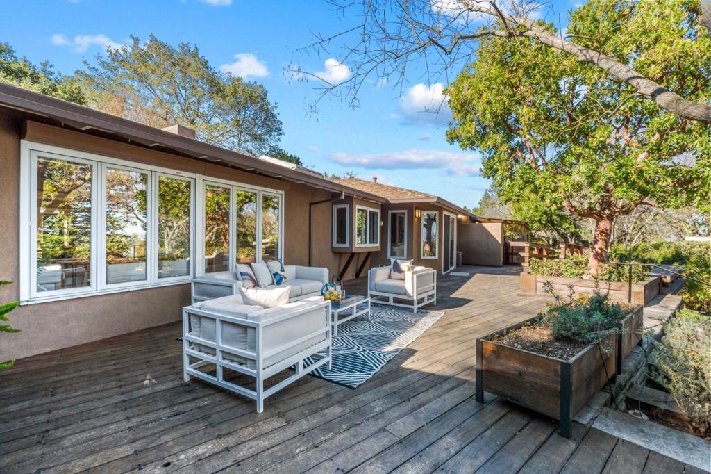 Nestled on approximately one acre in prestigious Los Altos Hills, this bright and airy 5-bedroom, 3.5-bath residence offers 2,732 Sq. Ft. of serene living surrounded by mature trees and lush landscaping. A formal entry welcomes you into elegant living spaces featuring a bay-windowed living room with fireplace, separate dining room, and a family room with sliding glass doors opening to the backyard. The home is filled with natural light from windows and multiple skylights, European shutters on most windows, and kitchen with skylight, garden window and views.. The expansive primary suite boasts a beautifully remodeled bathroom and direct access to a large deck showcasing stunning pond, city light, and Bay views, while a second primary bedroom includes its own bath and private deck access. Outdoors, enjoy the tranquil setting complete with a koi pond, quarantine pond, and additional pond, plus a large insulated tool shed with electricity. Offering exceptional privacy, tranquility, and a unique lifestyle opportunity, this remarkable property is just minutes from Sand Hill Road, Stanford University, major tech companies, Highway 280, and top-rated Palo Alto schools.