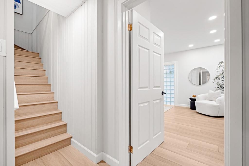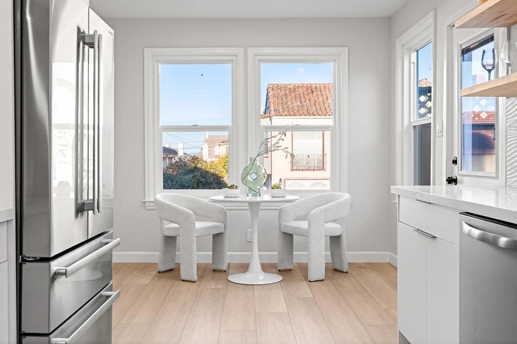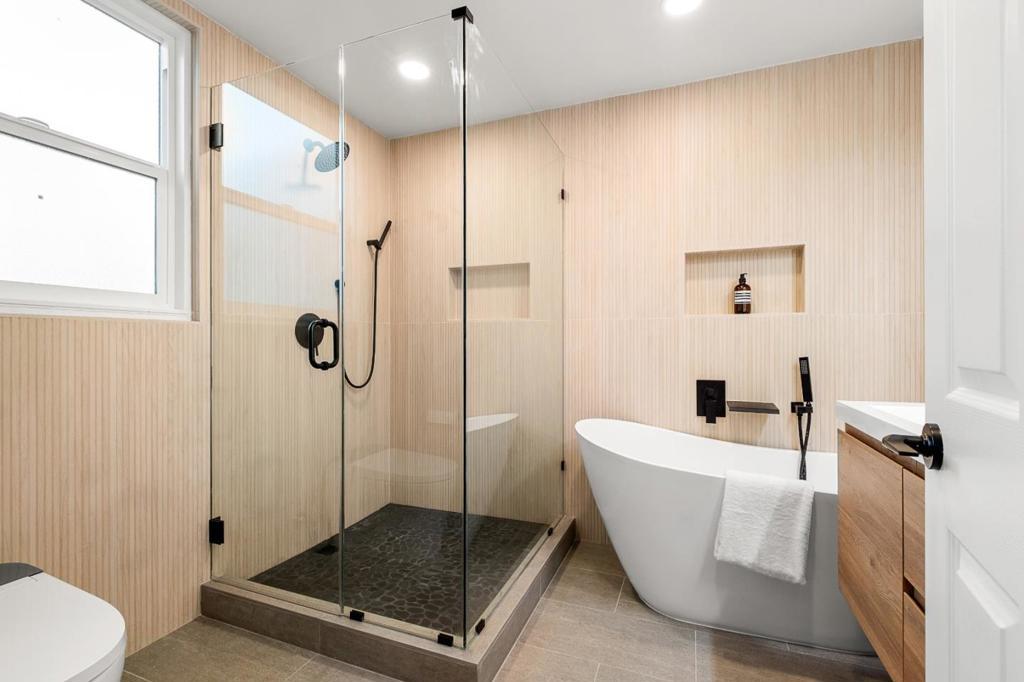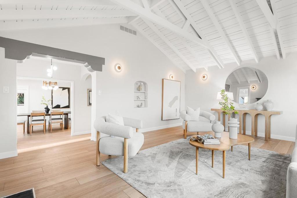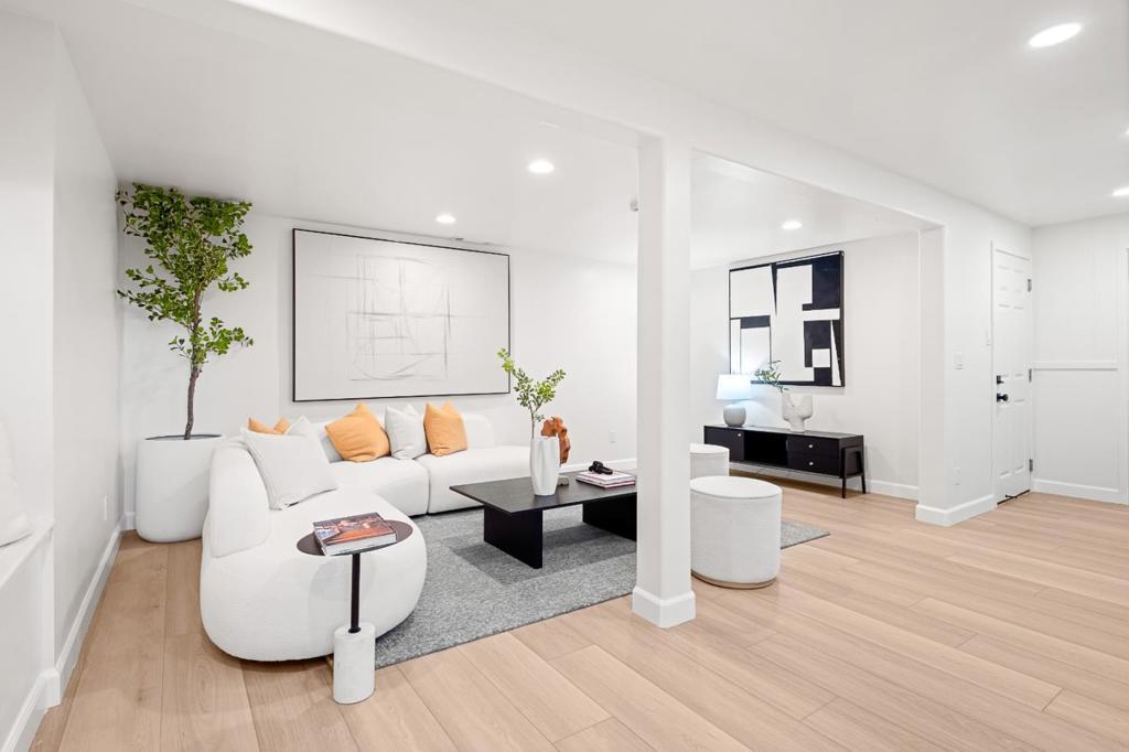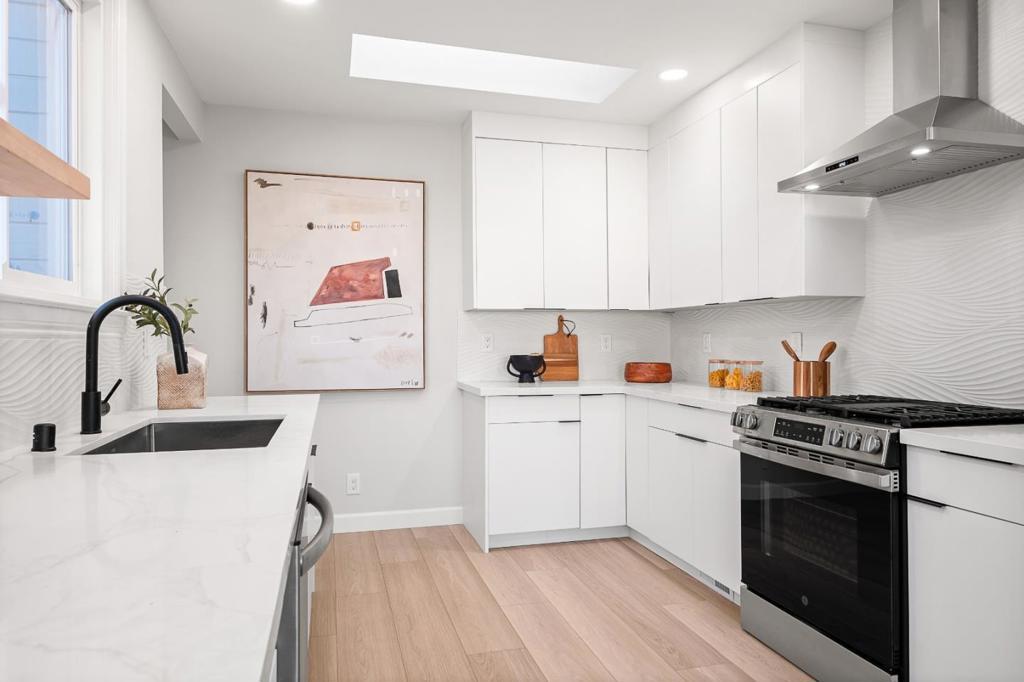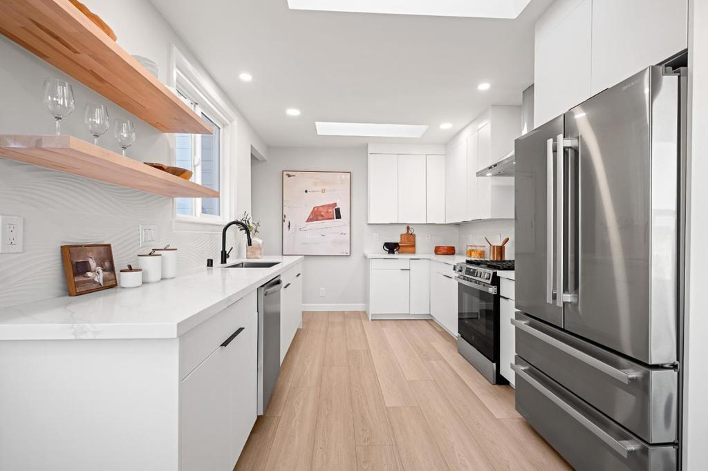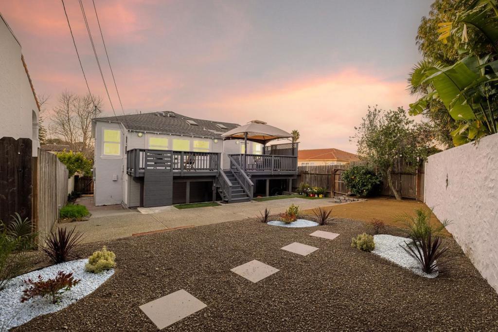 Turnkey and sun splashed, this Millbrae home delivers easy indoor outdoor living within walking distance to Millbrae downtown. A vaulted open beam living room welcomes you with leafy outlooks and a refined fireplace. The renovated kitchen dazzles with white cabinetry, quartz counters, sculptural backsplash, stainless appliances, matte black fixtures, and twin skylights. A cheerful breakfast nook opens to a large deck with canopy for effortless al fresco dining. A bright rear sunroom or office spans the windows. The bedroom wing features two updated baths; the spa like primary retreat has a freestanding soaking tub, dual vanity, and pebble floor glass shower. Downstairs, a generous bonus or family room adds space for work, play, or guests. Outside, enjoy a wide low maintenance yard with turf play area and multiple seating zones, plus a roomy garage. All recent work completed with city permits. This is the one.