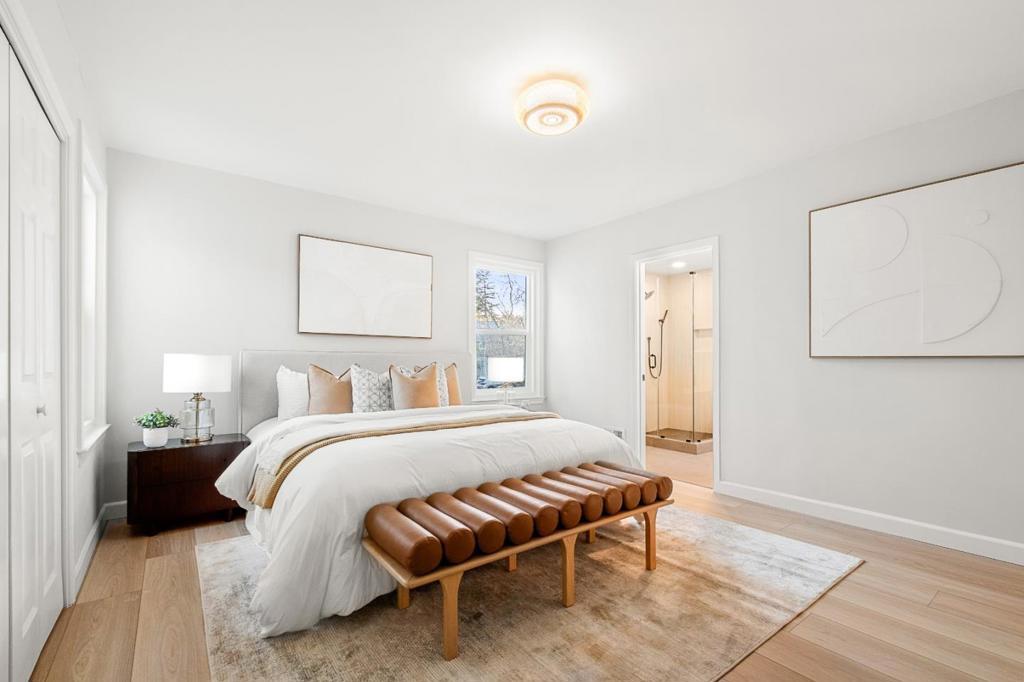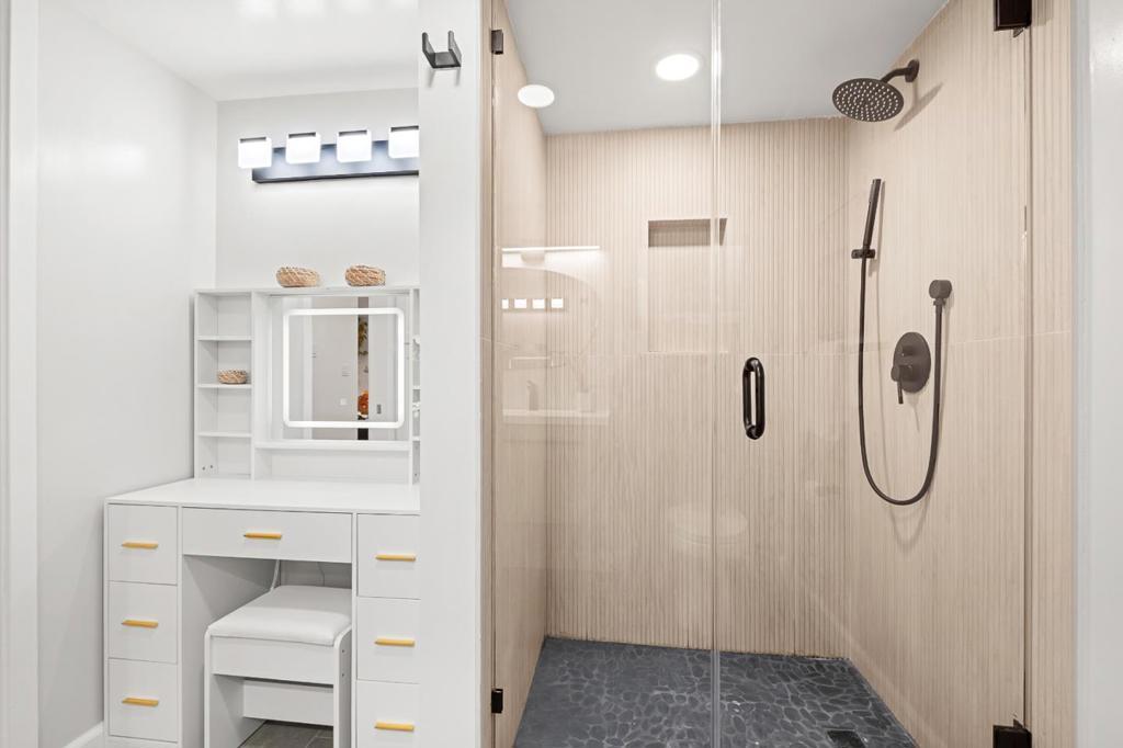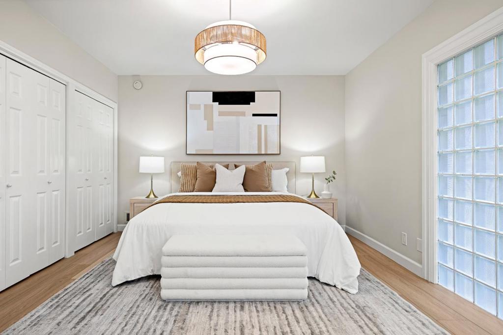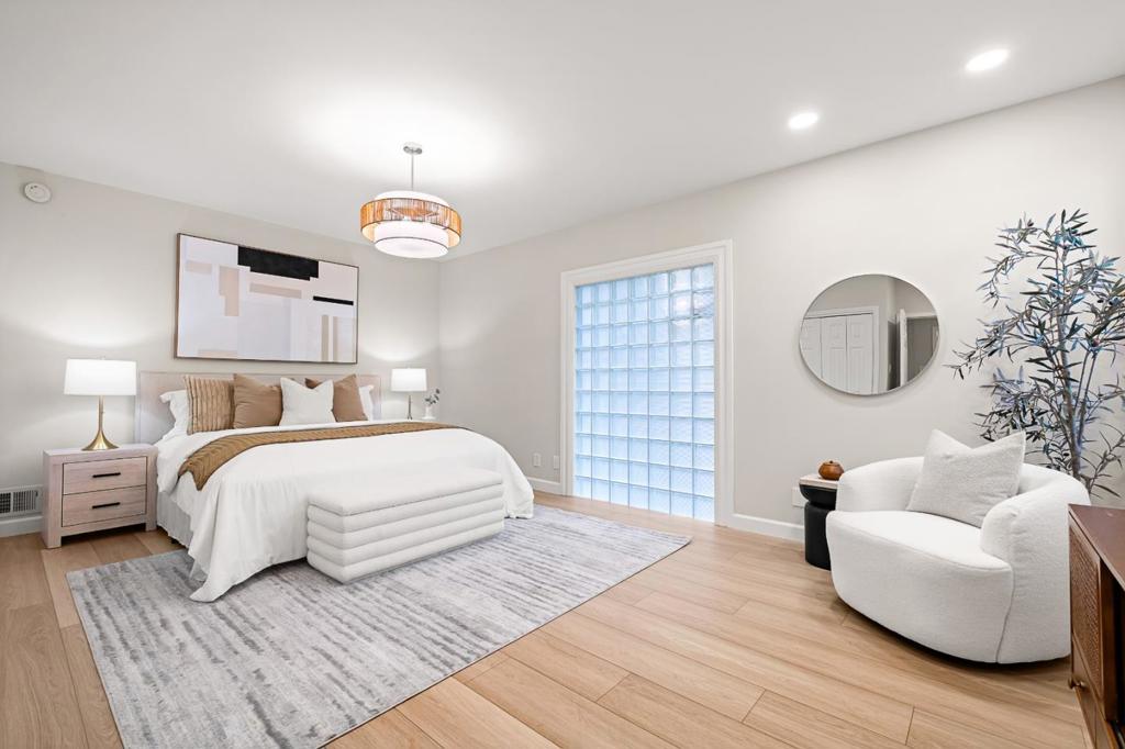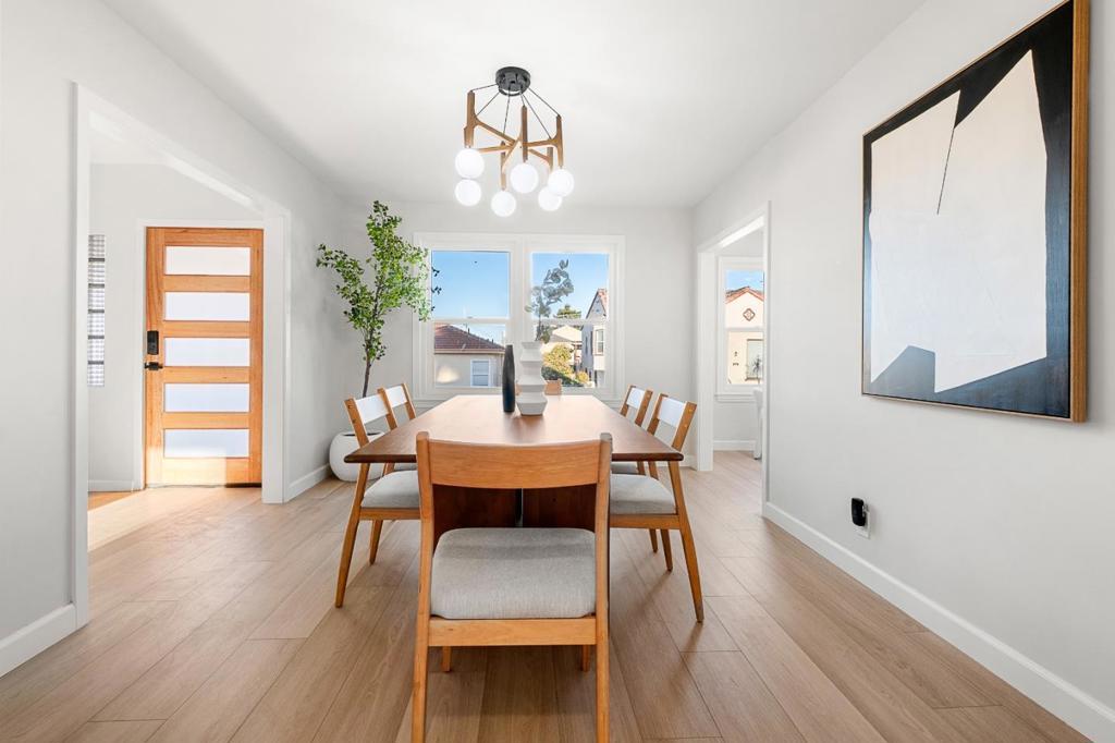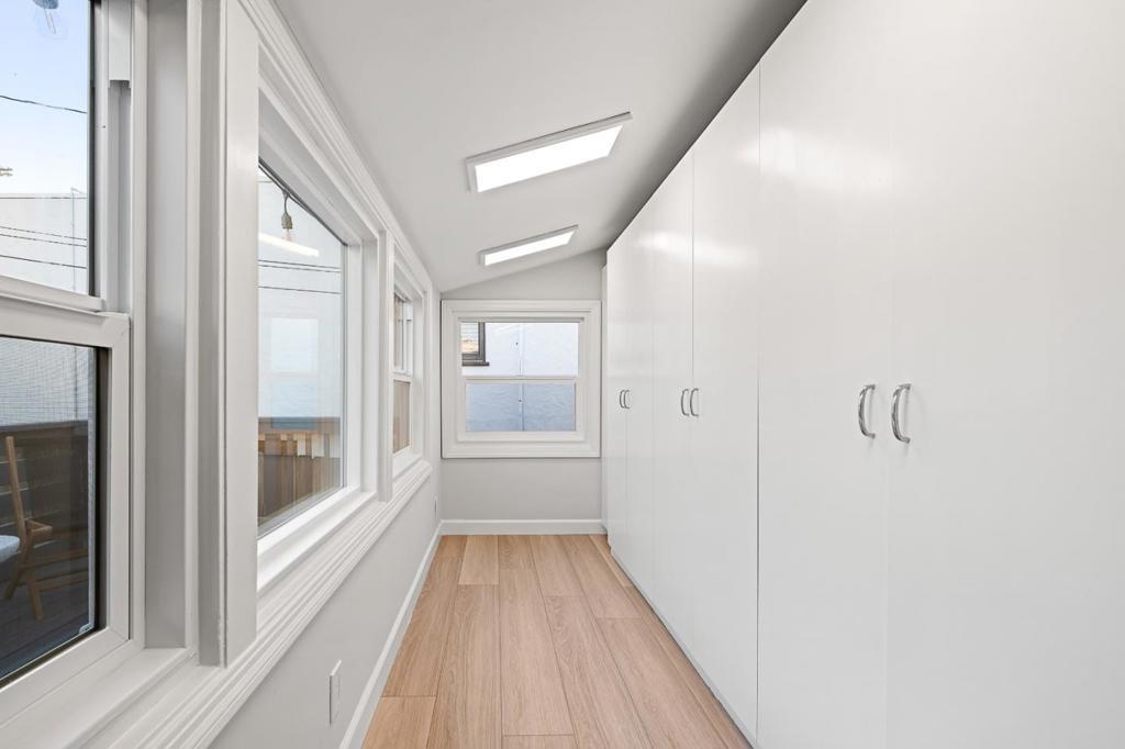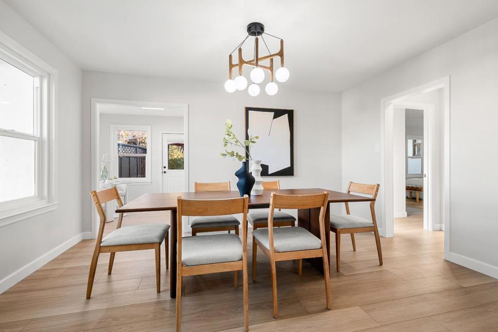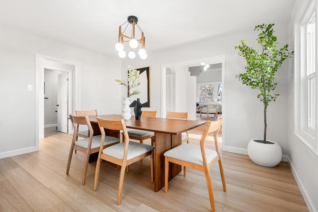 Turnkey and sun splashed, this Millbrae home delivers easy indoor outdoor living within walking distance to Millbrae downtown. A vaulted open beam living room welcomes you with leafy outlooks and a refined fireplace. The renovated kitchen dazzles with white cabinetry, quartz counters, sculptural backsplash, stainless appliances, matte black fixtures, and twin skylights. A cheerful breakfast nook opens to a large deck with canopy for effortless al fresco dining. A bright rear sunroom or office spans the windows. The bedroom wing features two updated baths; the spa like primary retreat has a freestanding soaking tub, dual vanity, and pebble floor glass shower. Downstairs, a generous bonus or family room adds space for work, play, or guests. Outside, enjoy a wide low maintenance yard with turf play area and multiple seating zones, plus a roomy garage. All recent work completed with city permits. This is the one.