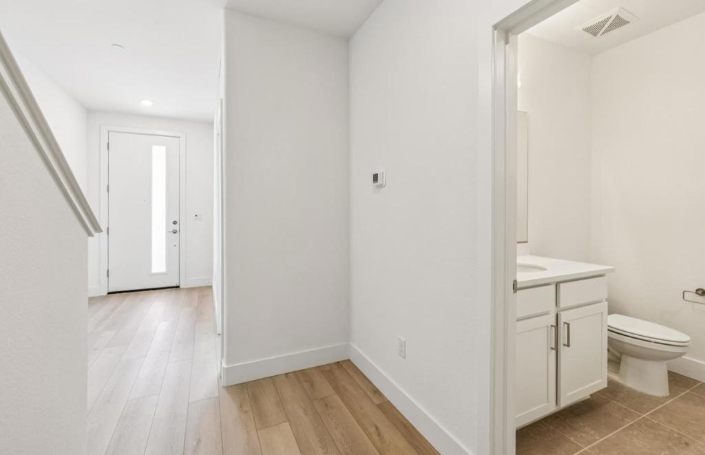 This beautiful home at The District offers a spacious 1911 square feet floor plan with 3 bedrooms and 3.5 bathrooms. This home includes upgraded cabinets, upgraded luxury vinyl plank flooring throughout and an included solar system with battery backup. Additionally this home has an attached 2 car side by side garage. This is a wonderful home in the city of Milpitas; close to everything with a true community feeling for our residents. We have highly ranked Milpitas schools. Our model homes are now open and ready to tour! This home is move in ready.